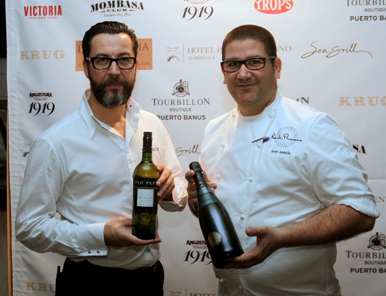 Jerez de la Frontera, febrero de 2014.- La Familia de Vinos González Byass ha estado presente durante las jornadas gastronómicas que el chef Dani García (2 estrellas Michelin) ha organizado en el Hotel Puente Romano de Marbella. En este encuentro gastronómico, el chef malagueño ha elaborado, junto a 14 estrellas Michelin, sorprendentes propuestas “a cuatro manos” maridadas con los vinos de Bodegas Tío Pepe (D.O Jerez), Viñas del Vero (D.O. Somontano), Vilarnau (D.O.Cava) y Finca Moncloa (V.T. Cádiz).