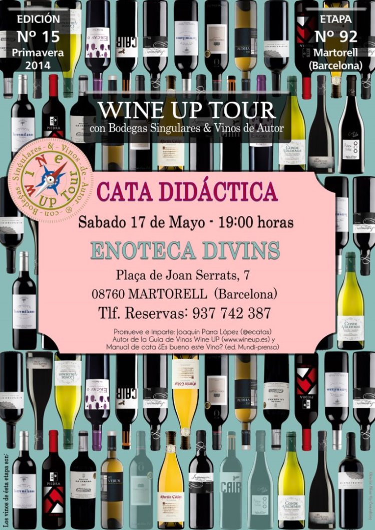 Tomelloso, 14/05/14. Han merecido la pena esperar 4 años para que el Wine Up Tour con Bodegas Singulares & Vinos de Autor llegue a Barcelona. Lo hará en dos ciudades próximas a la capital catalana: El Prat de Llobregat y Martorell, en dos vinotecas con larga trayectoria y grandes profesionales.