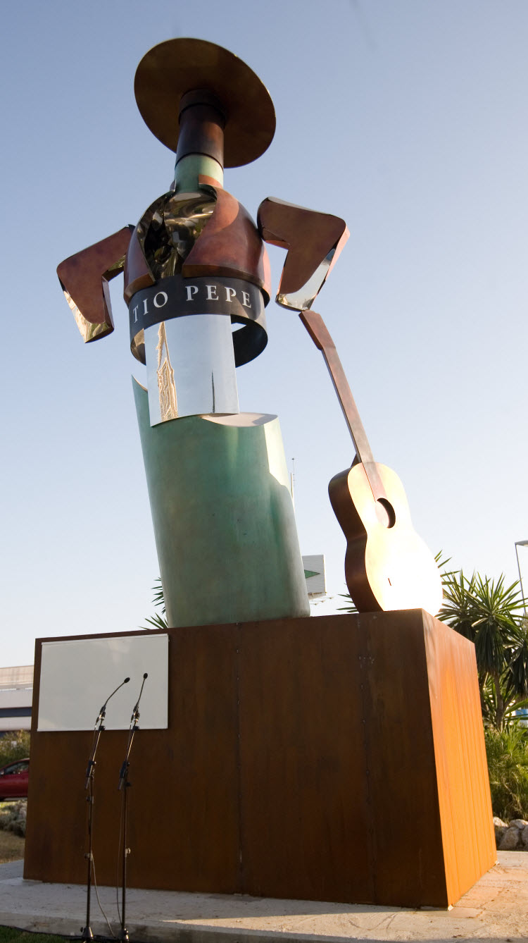 E Monumento de la Rotonda Tío Pepe se convierte en elemento de bienvenida a Jerez y, al mismo tiempo, de identificación de la vinculación de casi dos siglos de González Byass con la ciudad. De acero inoxidable de alta calidad y con nueve metros de altura, esta escultura, diseñada por Chiqui Díaz, da forma a la mítica botella de Tío Pepe, dotándola de elegancia y movimiento.