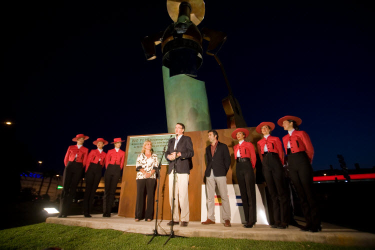 Jerez de la Frontera, agosto de 2014.- La Alcaldesa de Jerez, María José García-Pelayo Jurado, y el Presidente de González Byass, Mauricio González-Gordon, presidieron ayer la inauguración del Monumento que ya corona la Rotonda Tío Pepe de Jerez. Con este monumento, González Byass quiere devolver a la ciudad de Jerez su gentileza por la concesión de la titularidad de una las principales vías de la ciudad.