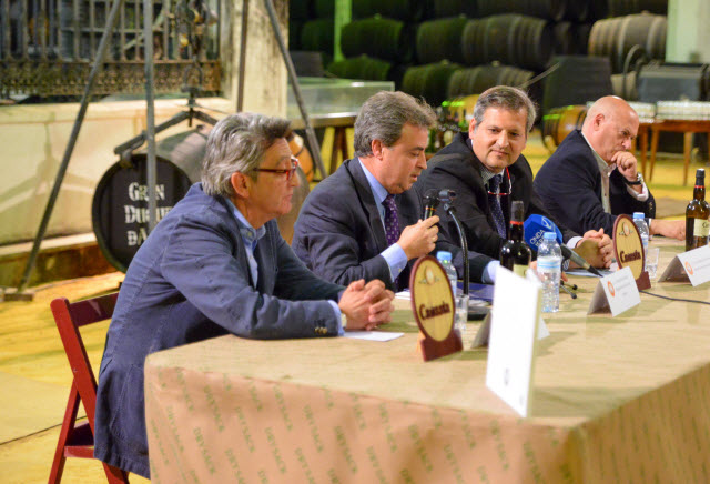 El director general de Williams & Humbert, Jesús Medina, el crítico de arte, Bernardo Palomo y el delegado de Turismo, Cultura y Fiestas, Antonio Real Granado, fueron los encargados de presentar este acto al que acudieron más de 200 personas, entre las cuales se contaban personalidades relevantes del mundo de la fotografía y el arte, así como del vino de Jerez, como el secretario general del Consejo Regulador del Vino de Jerez, César Saldaña.