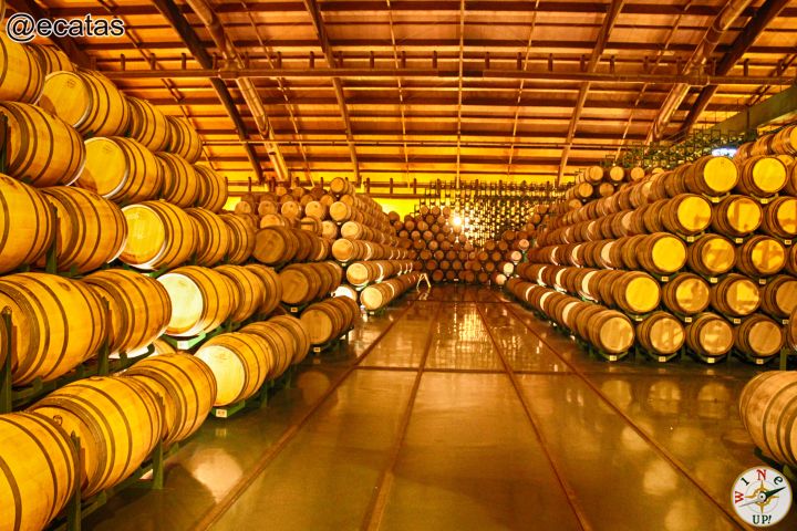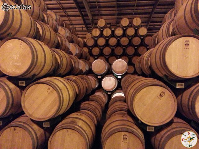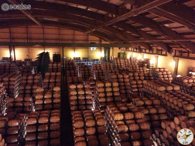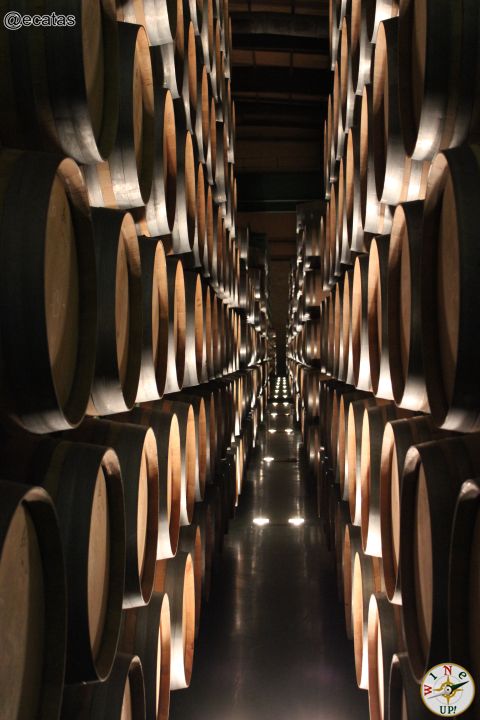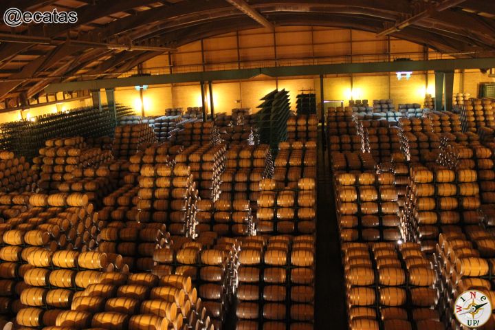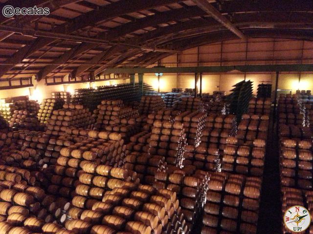 La sala de barricas es una nave diáfana de unos 6400 m2, algo que ya de por sí impresiona. Desde lo alto se ven “pirámides de barricas” que tienen una buena explicación.