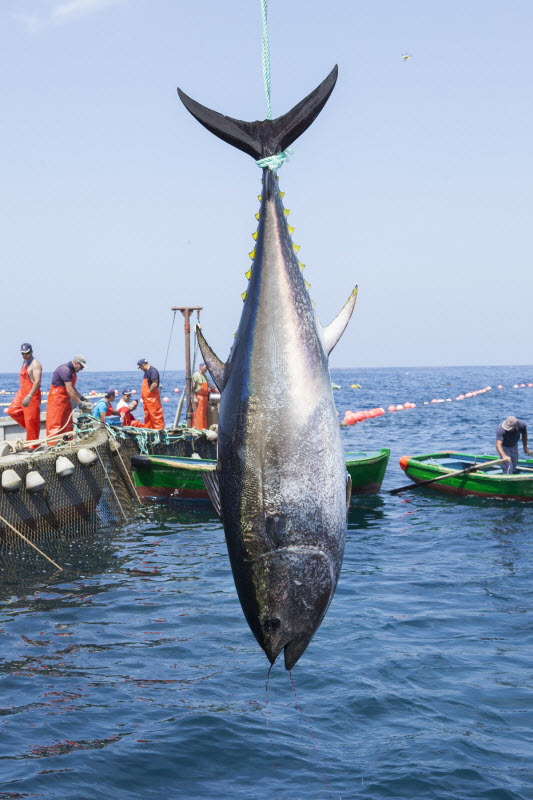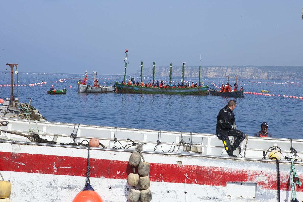 El agua comienza a bullir y las aletas dorsales asoman como afilados cuchillos. Los “hombres rana”, perfectamente dirigidos desde la “sacada”, van capturando los atunes que son izados, con maestría, a la embarcación denominada “testa” y que los conducirá a puerto. El asombro, la fascinación e, incluso, la admiración invaden los rostros de los asistentes que, cámara en mano, inmortalizan las escenas que se suceden.