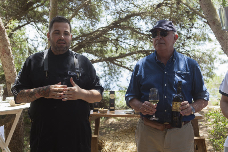 Entre pinos, romeros y plantas únicas de enebro marino, un espacio acogedor y camuflado en la arenisca se convierte en un escenario de degustación que da sentido a las miles de armonías posibles entre el atún rojo y el vino de Jerez. El chef encargado de esta noble tarea es Mauro Barreiro, joven cocinero de la provincia con una trayectoria dilatada, embajador del atún de Petaca Chico y gran amante de los vinos de González Byass. A su lado, dispuesto a dirigir una cata magistral, se encuentra Antonio Flores, enólogo de la Bodega y conocido en el mundo del vino como @hacedordevinos.