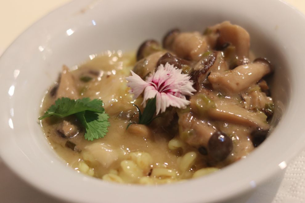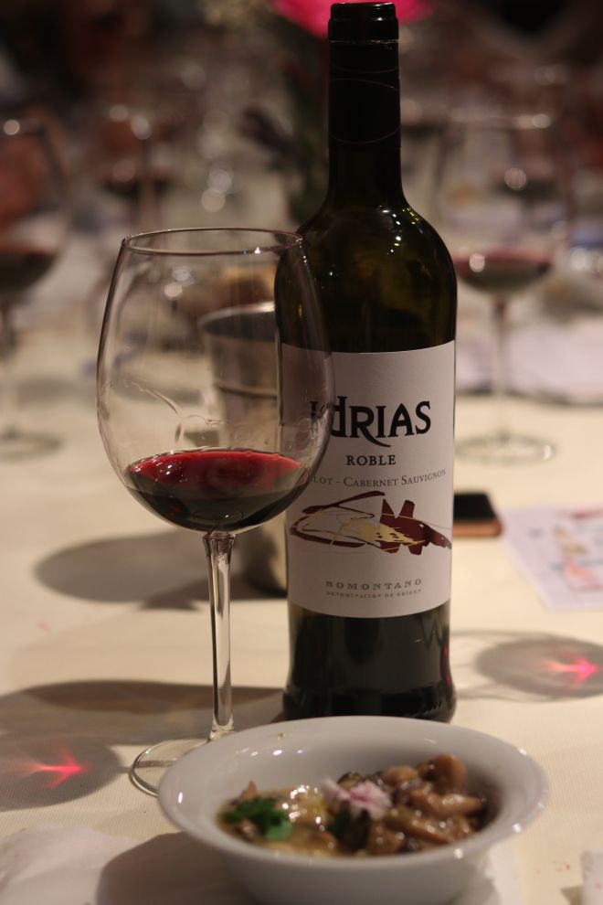 Idrias Roble 2016 (Merlot y CabernetSauvignon) de Bodega Idrias (D.O. Somontano) con setas y trigo tierno con cocotxa al pilpil
