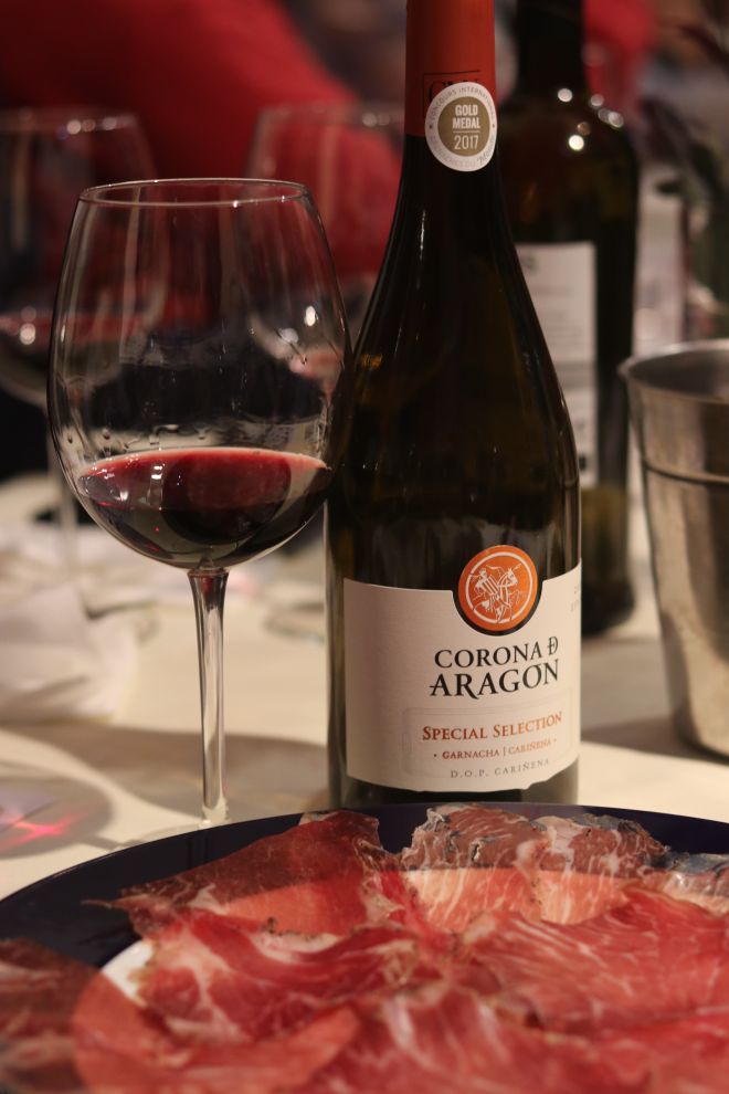 Corona Special Selection 2014 (Garnacha y Cariñena) de Grandes Vinos (D.O.P. Cariñena) con delicias de presaiberica a la pimienta