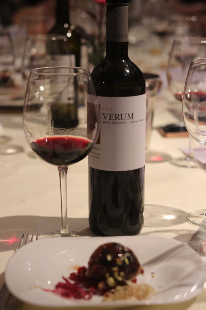 Verum Coupage Tinto 2012 (Tempranillo Merlot y Cabernet Sauvignon) de Bodegas Y Viñedos Verum (IGP Vino de la Tierra De Castilla) con meteorito de Burgos con guarnición de col y pimientos caramelizados