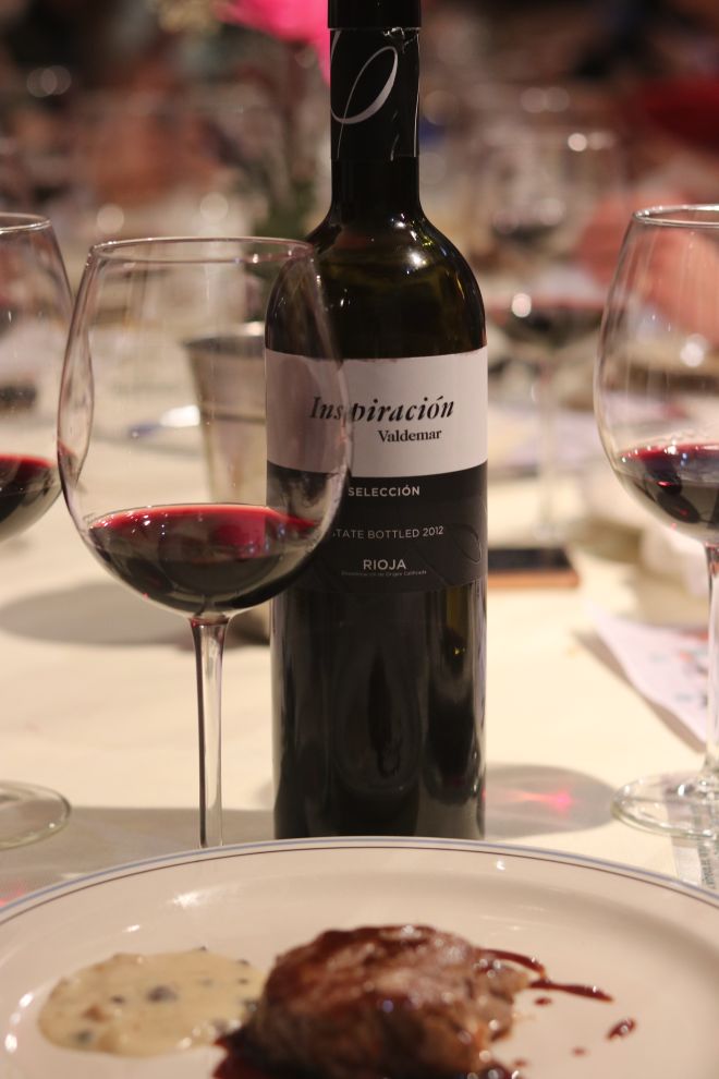 Inspiración Valdemar Selección 2012 (Tempranillo, maturana y graciano) de Bodega Inspiración Valdemar (D.O.C. Rioja) con Tournedo de ternera con bloc de foie y carbonara de setas