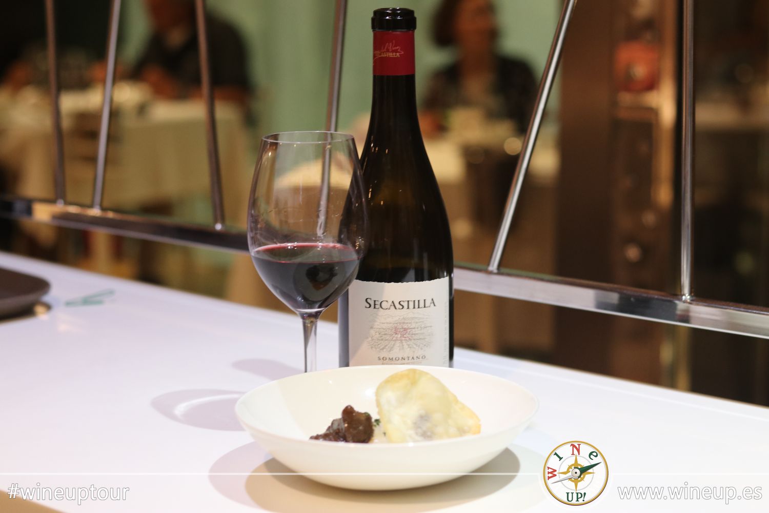 Plato tras plato, el listón se va poniendo cada vez más alto. Para antes del postre, la propuesta es rotunda: Lasaña de carrillera ibérica que se armonizó con dos vinos: Secastilla 2013 (D.O. Somontano) de Pago de Secastilla (Viñas del Vero) y Verum 2012 de Bodegas y Viñedos Verum (vino de la Tierra de Castilla). Dos vinos completamente distintos pero que armonizaban a la perfección con la carrillera, una carne jugosa, intensa pero con un sabor delicado.
