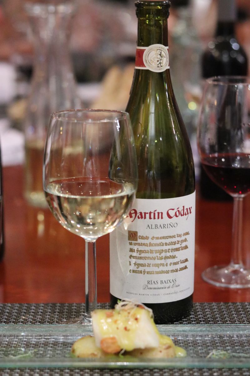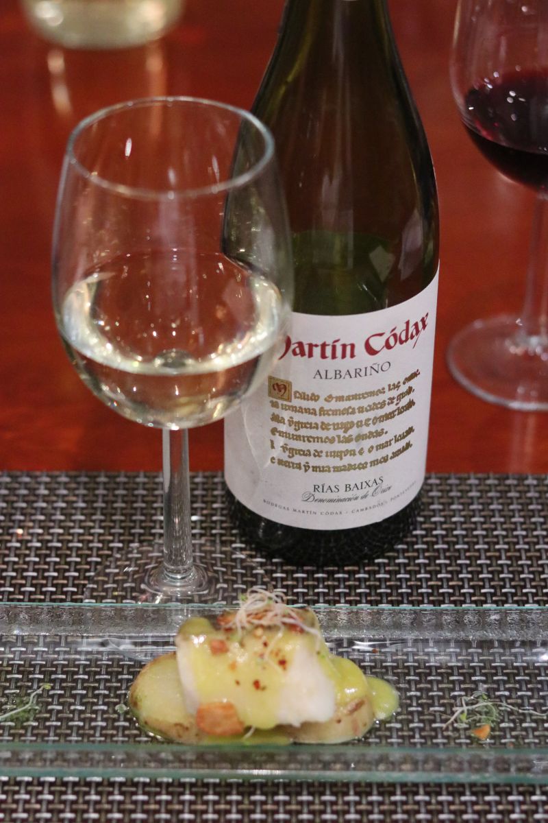 Martín Códax 2017 de Bodegas Martín Códax (D.O. Rías Baixas). Este Albariño 100% muestra intensidad aromática en nariz, cargada de cítricos y flores blancas. En boca, un vino con carácter, acidez marcada y salinidad. Con el bacalao va perfecto porque esa acidez y frescura nos limpia la boca trago a trago y nos prepara para seguir disfrutando. Los sabores se complementan, algo que es la base del buen maridaje-armonía.