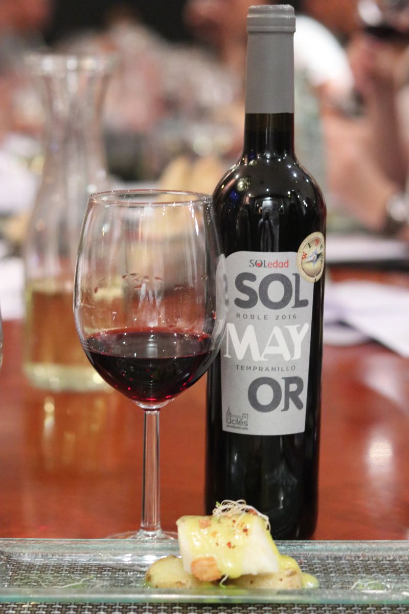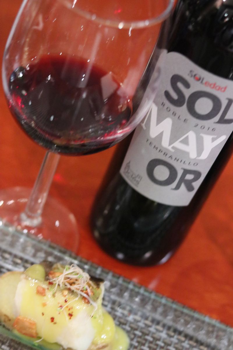 Con Solmayor Tinto Roble 2016 de Bodegas La Soledad (D.O. Uclés) demostramos que los tintos también son para los pescados. Un tempranillo 100% con una influencia mínima de la barrica pero con un tanino pulido que va perfecto con el bacalao. Realmente este tinto va bien con cualquier pescado graso. Destaca sobre todo los aromas de fruta roja y en boca, es poco invasivo, te permite disfrutar de cada trago.