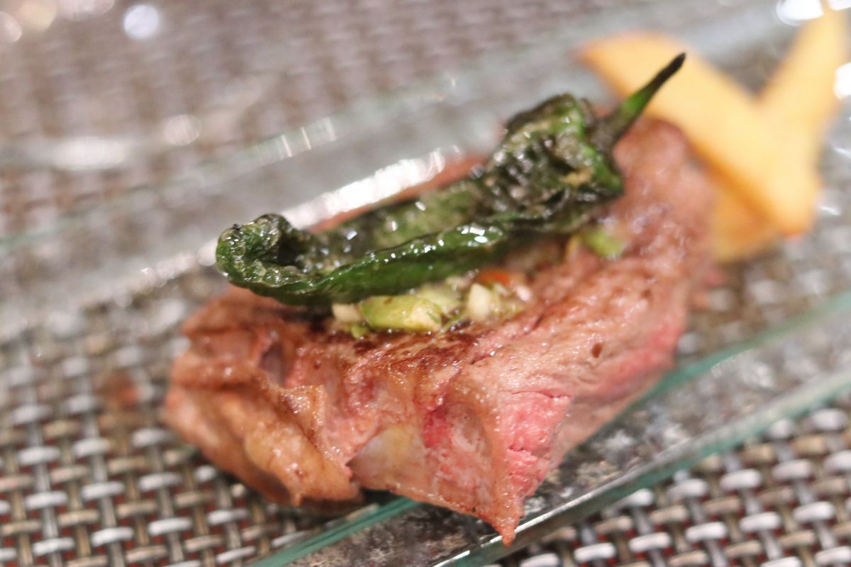 Pasamos al plato fuerte: Entrecot a la brasa con Chumichurri. Destaco algo que siendo normal, no pasa en este tipo de eventos. Fueron uno a uno preguntando el punto de la carne para que cada uno la tomara a su gusto y la disfrutara.