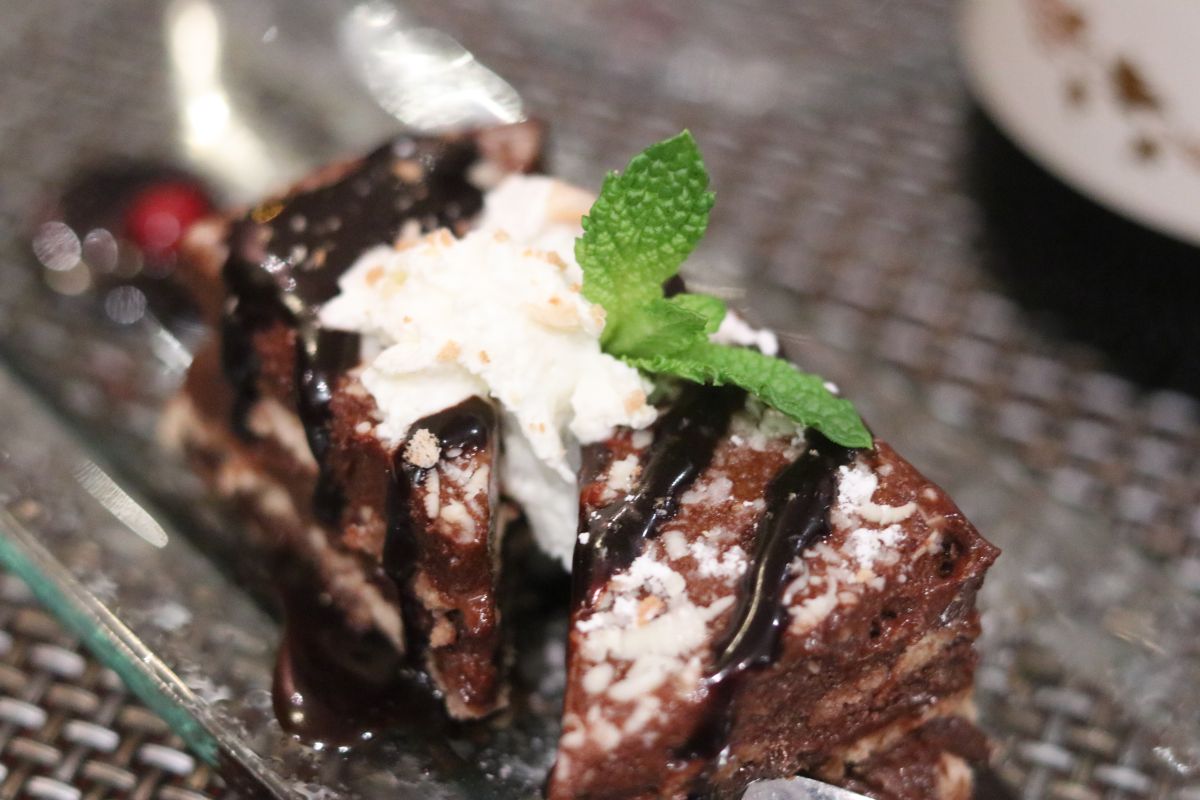 Para el postre prefiero ir al contraste, por lo que pedí al restaurante una de sus propuestas dulces, la tarta de galleta y chocolate.