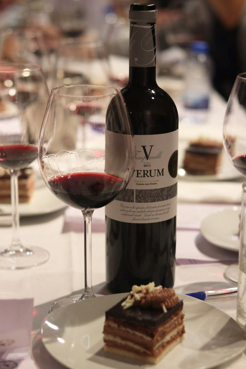 Como a nadie le amarga un dulce, con Verum Tempranillo reserva de familia 2010 de Bodegas y Viñedos Verum (IGP Tierra de Castilla) nos llegaba una “sorpresa de chocolate”. El vino está considerado como mejor vino tempranillo de Castilla-La Mancha, considerado y premiado como tal. Un vino intenso, muy vivo después de 8 años en el que todavía sorprende la fruta aun teniendo una crianza de 18 meses en roble francés. ¿Quién dijo que en Castilla-La Mancha no se podían hacer vinos longevos?