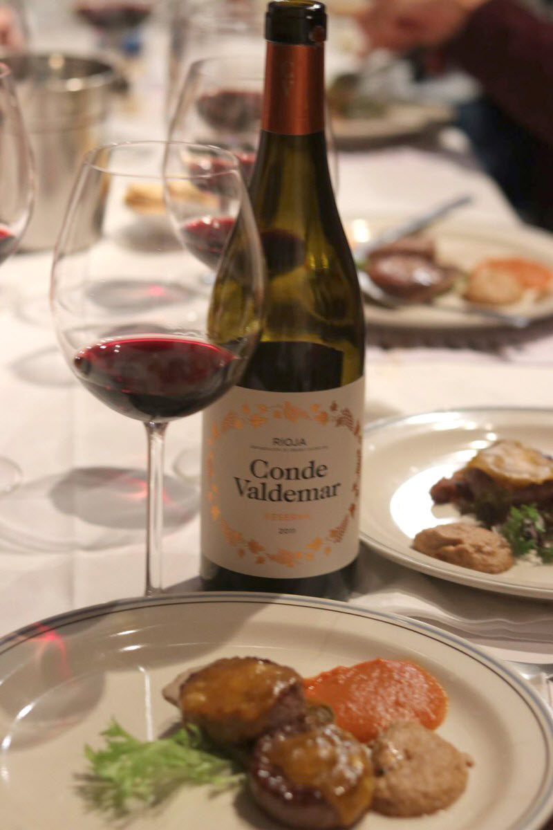 El vino y la comida nos hace amigos y permite disfrutar, aun sabiendo que al día siguiente sonará el despertador. Como séptimo vino y previo al postre, tocaba hamburguesas de wagyu con mousse micológica con el que por muchos es considerado el mejor reserva de la D.O.Ca. Rioja por su RCP: Conde Valdemar Reserva 2011 de Bodegas Valdemar. 130 años de experiencia de la familia avalan el resultado de este vino que atesora la finura, intensidad y sobre todo, la virtud de ser un vino que representa lo mejor de la región vitícola por excelencia en España.
