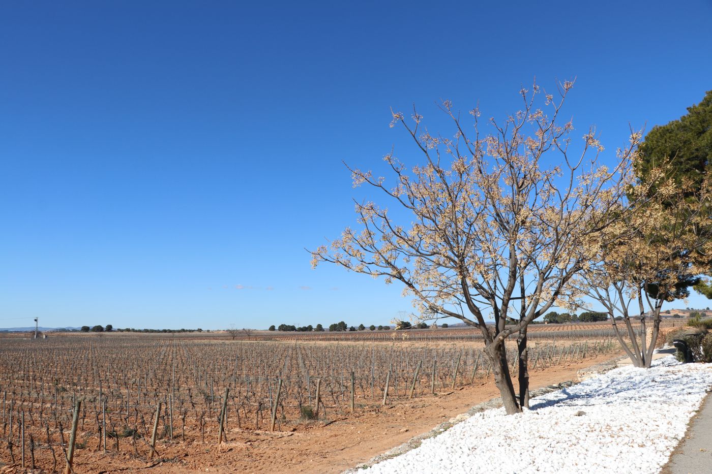 Me recibe una mañana soleada del mes de febrero, con la viña en su letargo y el lento despertar de los almendros que comienzan a dar color al horizonte. Aparcas y desenfundas la cámara de fotos ávido de retratar paisajes, aunque estos se quedan grabados en la retina desde el primer instante.