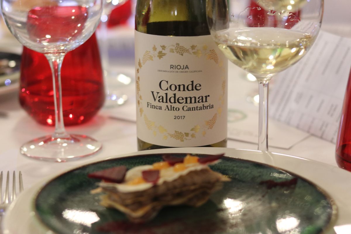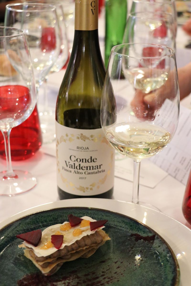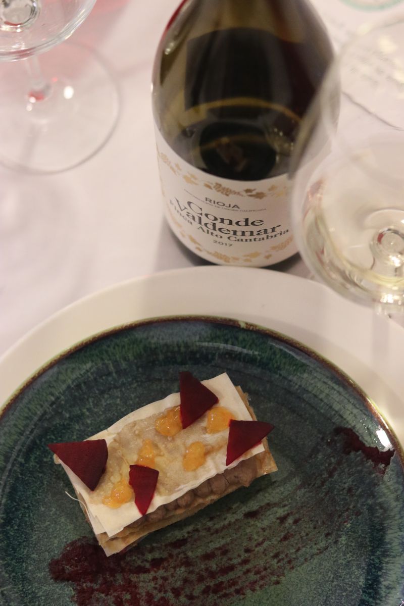 Milhoja de paté de caza y calabaza con Conde Valdemar Finca Alto Cantabria Fermentado En Barrica 2017 (Viura) de Bodegas Valdemar (D.O.C. Rioja)