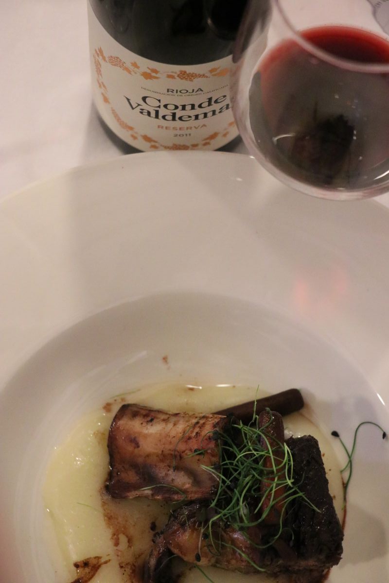 Costilla de Wagyu lacada con puré de yuca con Conde Valdemar Reserva 2011 de Bodegas Valdemar (D.O.C. Rioja)