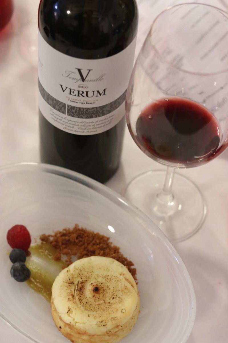 Tarta de queso cremosa templada con Verum «V» Tempranillo Reserva De Familia 2010 de Bodegas y Viñedos Verum (Tierra De Castilla)