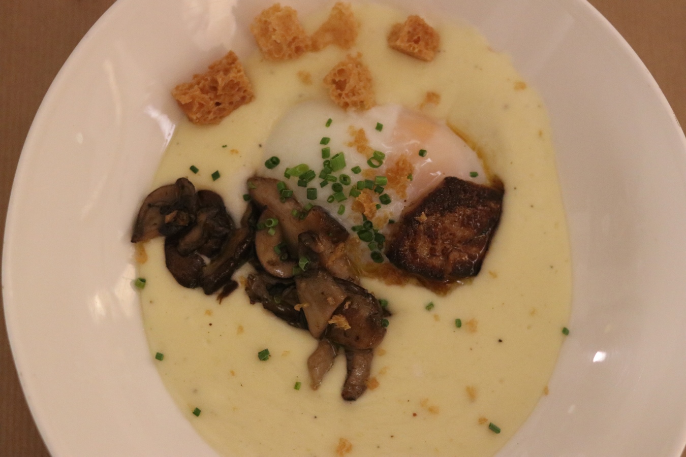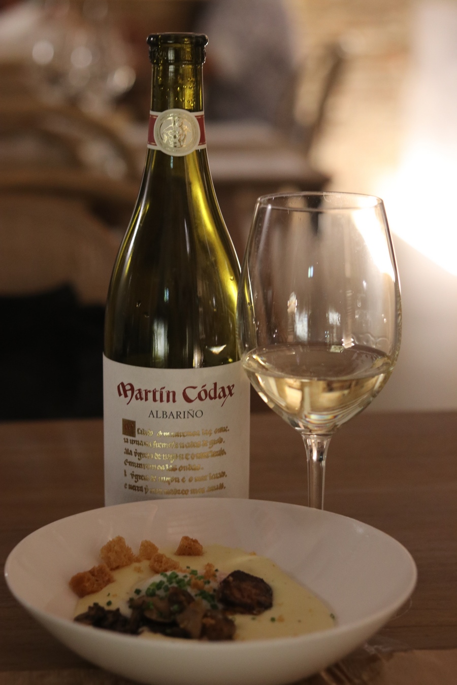 Con el siguiente plato Huevo poché, foie a la brasa, setas y patata trufada aumentábamos de potencia en sabor pero queríamos “refrescarlo” con vinos blancos, por lo que la propuesta fue: