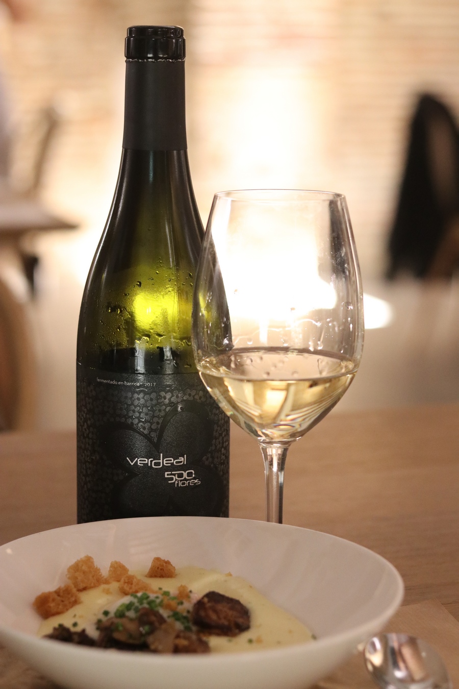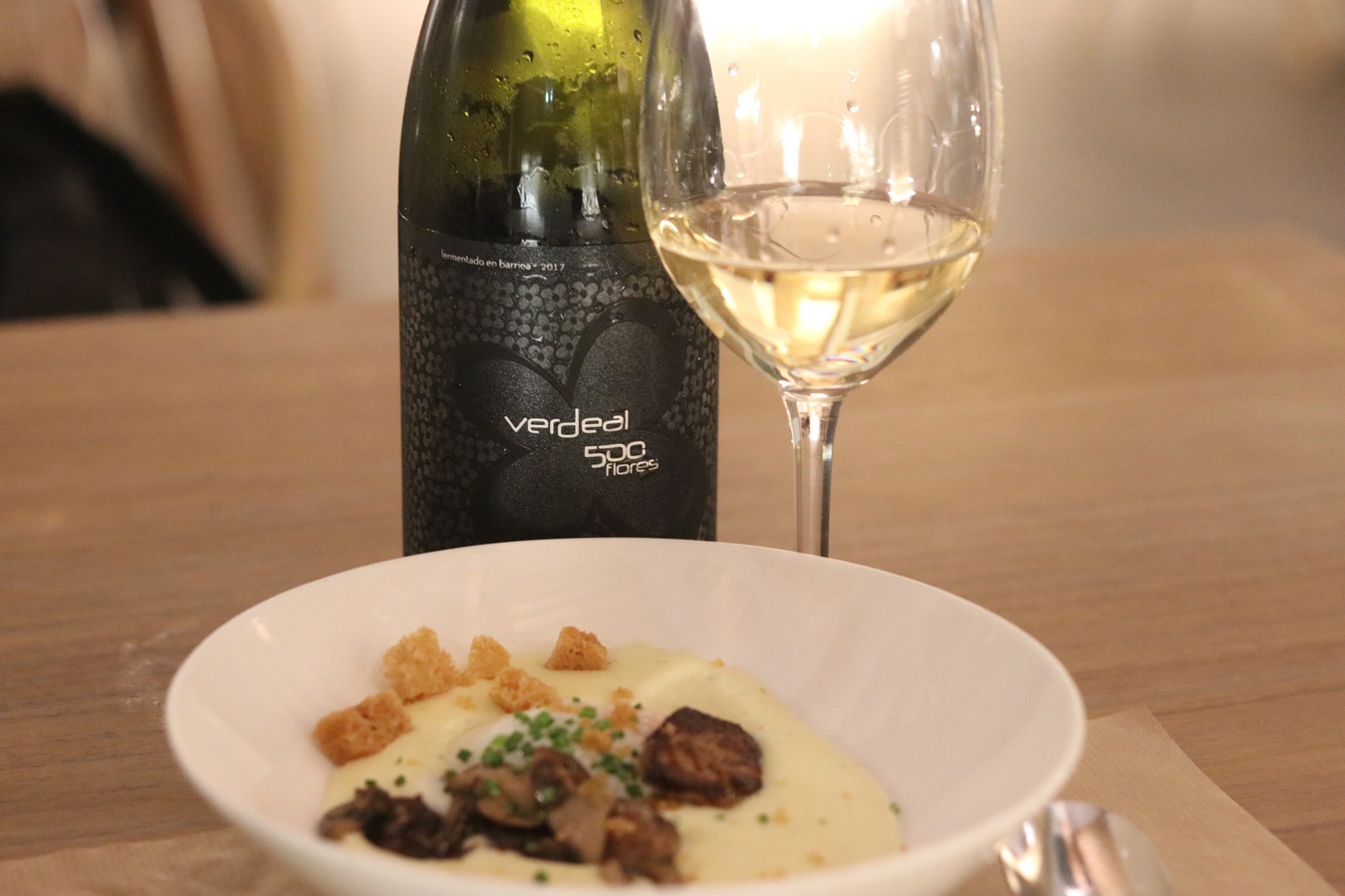 Verdeal 500 flores de Bodegas Verdeal (D.O. Rueda). Un verdejo así es difícil encontrar. Fermenta en barricas de roble francés de 500 litros sin tostar y posteriormente tiene una crianza en barrica de otros 15 meses con sus lías. En nariz destaca fruta blanca (manzana), sutil melocotón y toques de hinojo (anisados). La madera aparece de una forma aromática sin añadir tostados. En boca es graso, con volumen, persistente. Sin duda, para repetir.