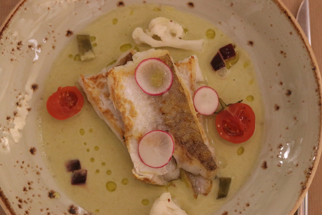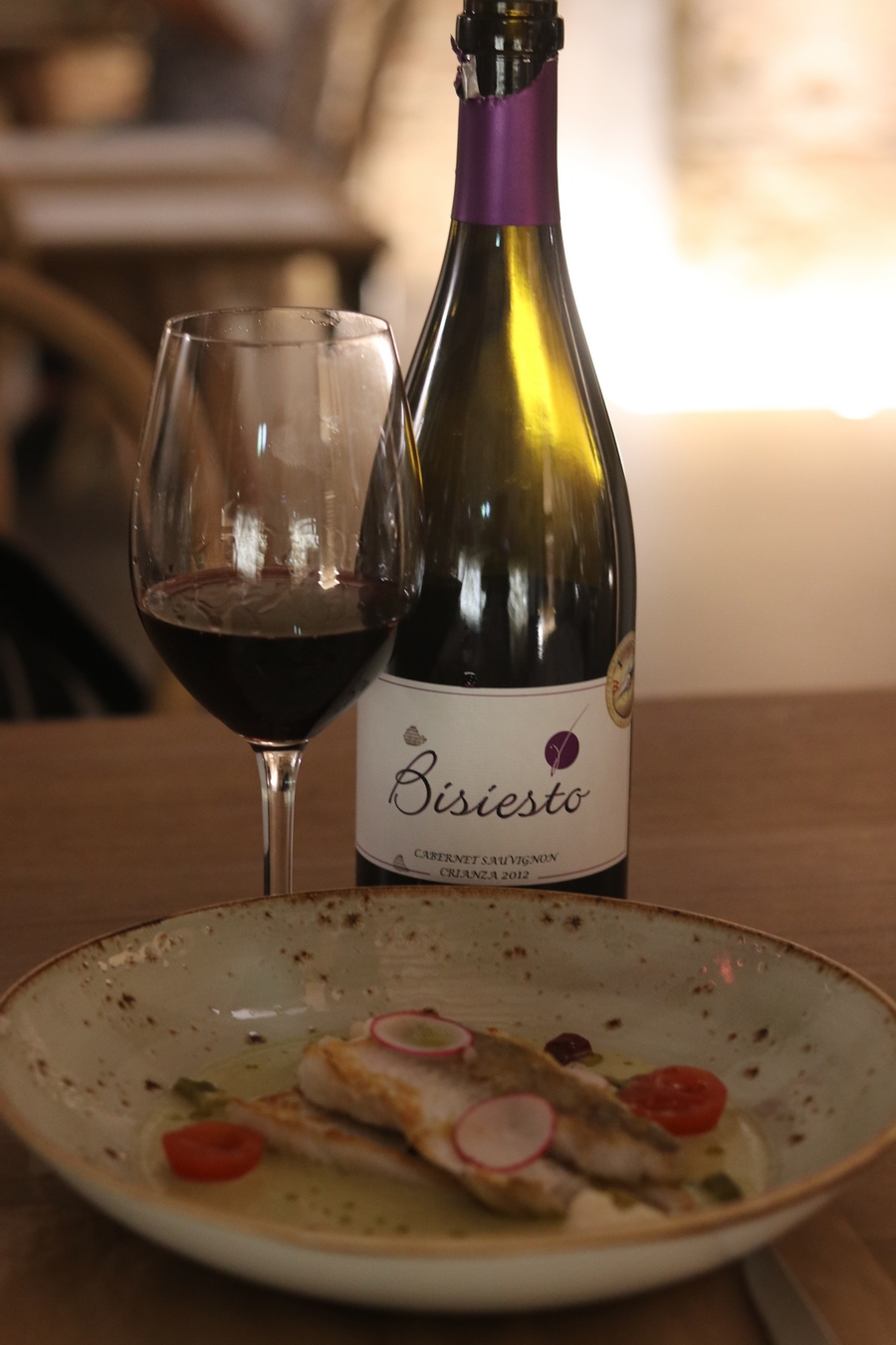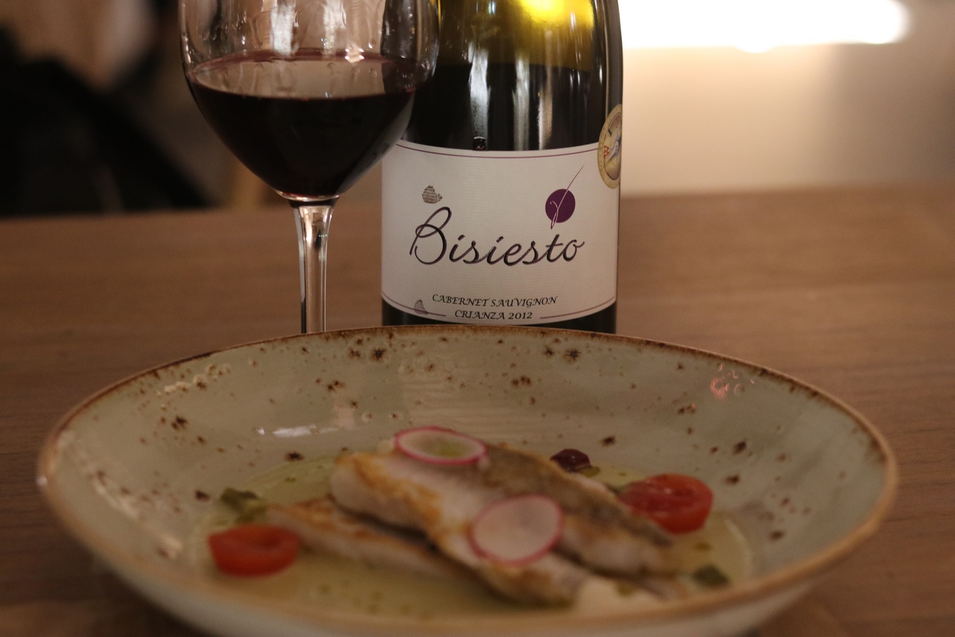 Tras los blancos, toca pensar en “tinto” y volvemos a romper con lo establecido, ya que para el siguiente plato: Lluç de Denia en samorra de verduras Les Cuinetes pensamos en Bisiesto Cabernet 2012 de Bodega Soledad (D.O. Uclés) porque aun siendo un tinto y cabernet, nos aporta muy buena acidez y tanino pulido, por lo que se complementa perfectamente con el pescado. En nariz destacan recuerdos especiados, de regaliz negro, toques mentolados y sutil hoja de tabaco. En boca, como ya he dicho, tanino noble, buena acidez y persistencia.