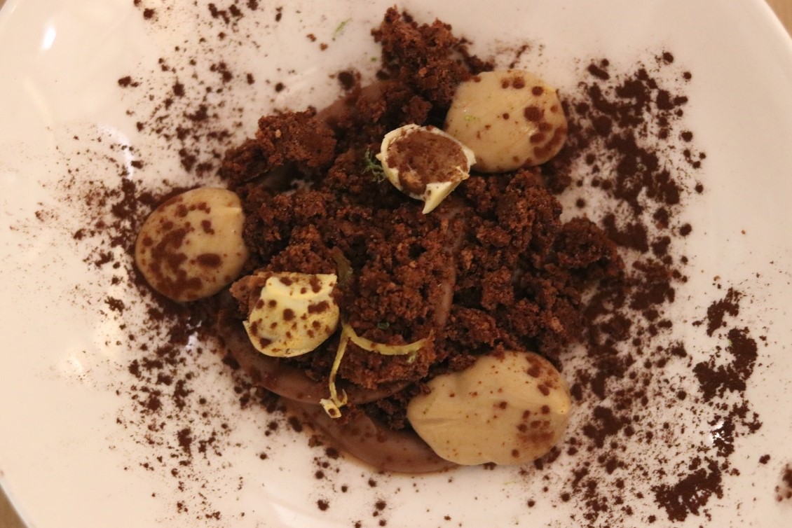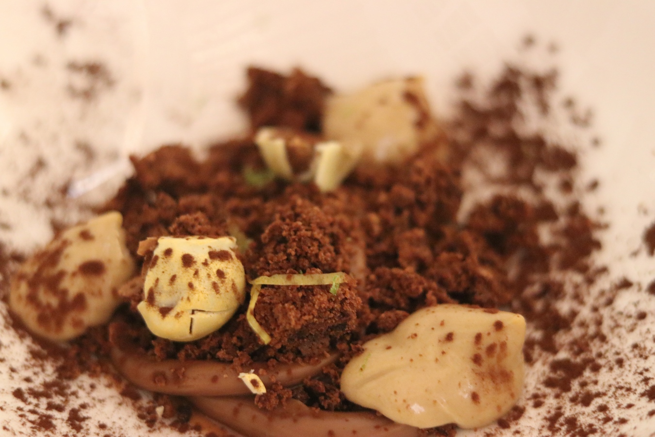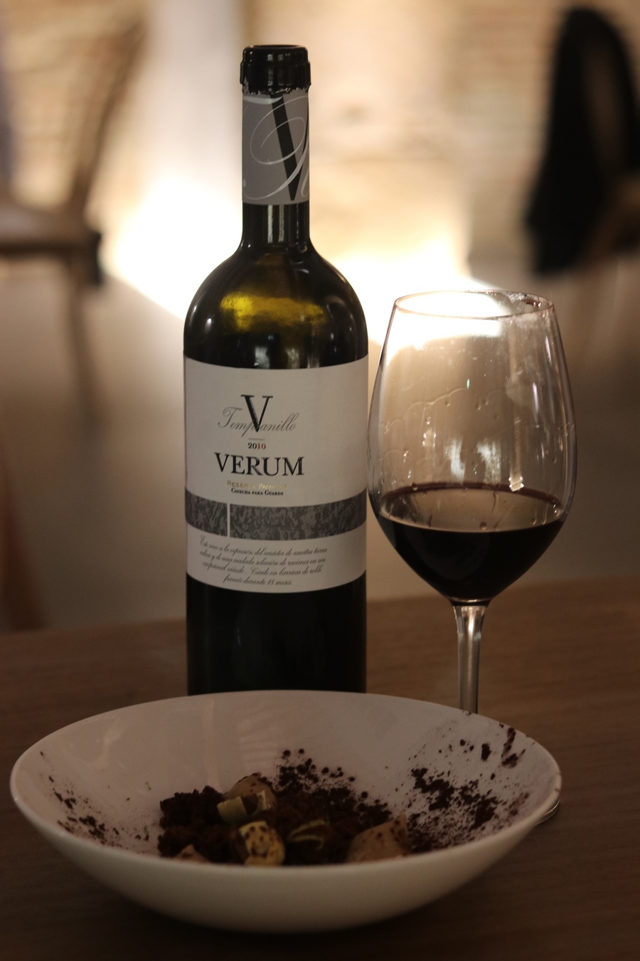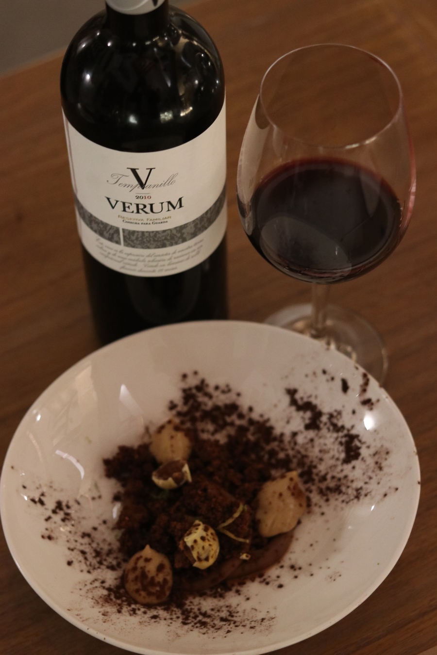 Como todo llega a su fin, nada mejor que hacerlo con un buen postre: Chocolate, avellana y lima. Aquí vuelvo a romper con lo establecido y hacer una armonía por contraste, que por cierto el chocolate le va muy bien al vino propuesto: Verum Tempranillo Reserva de familia 2010 de Bodegas y Viñedos Verum (VT Castilla) no te deja indiferente, demuestra la capacidad de mostrar un carácter difícil de encontrar en un vino con 9 años. En nariz continúa mostrando fruta roja, regaliz negro, toques terrosos, minerales, y vuelta a la fruta. En boca tanino noble que acompaña el trago y le da estructura, carnosidad junto a frescura y vuelta de esos recuerdos de nariz como la fruta roja, sutil cacao, vainilla, especias… todo en su sitio, todo con intensidad.