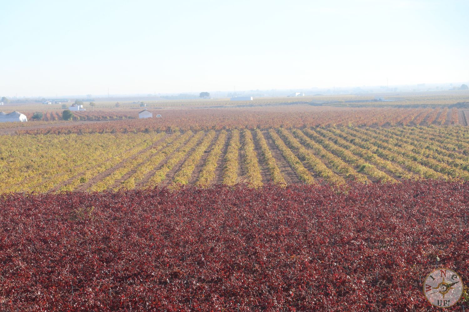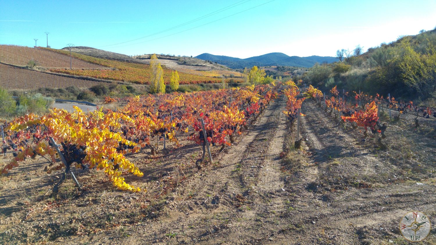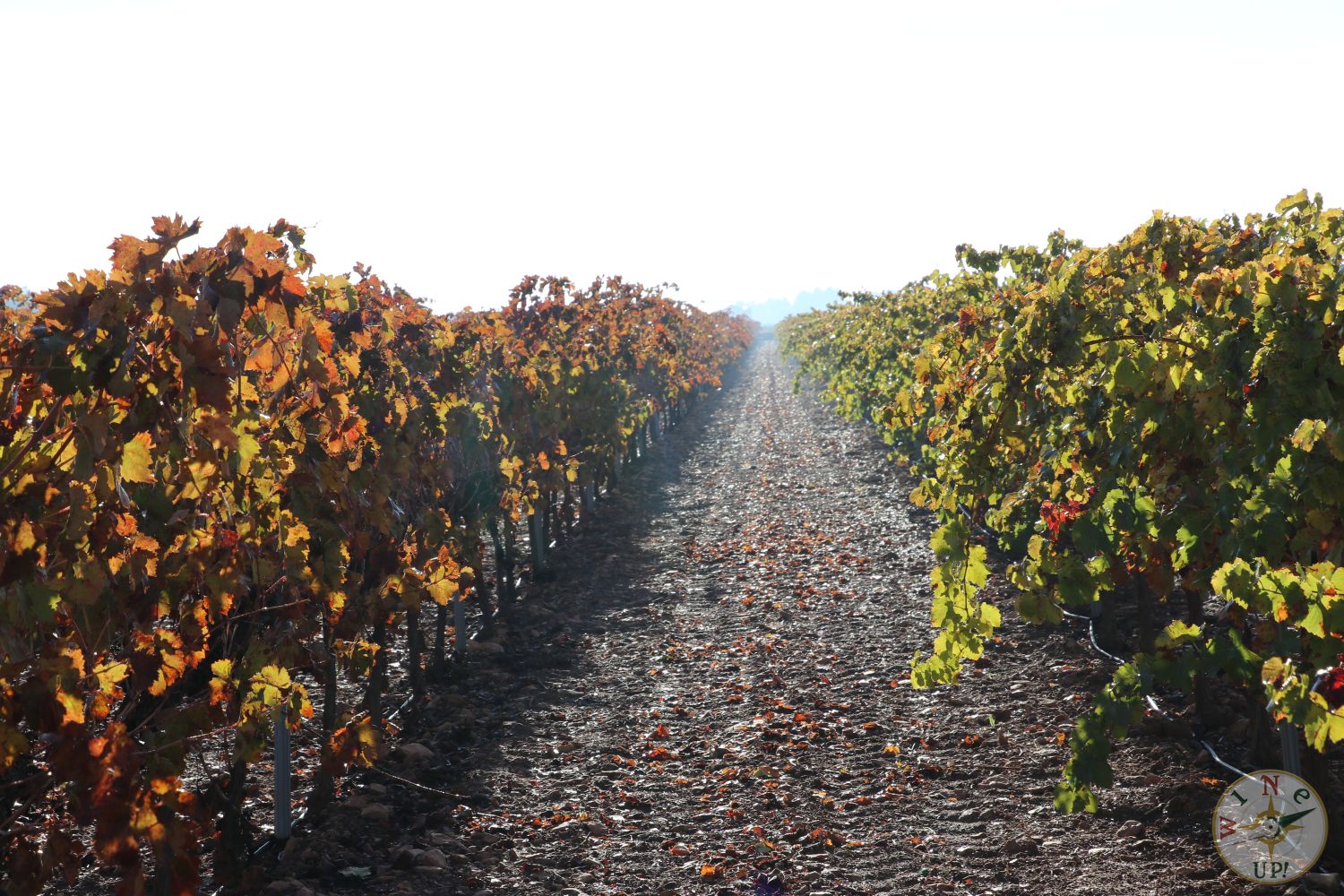 Sin embargo, para disfrutar de los colores no es necesario estar dentro de la viña. En esta época se nos muestra un abanico de color que difícilmente se puede encontrar en otro cultivo. Cada variedad de cepa nos mostrará una tonalidad diferente que va cambiando según nos acercamos a diciembre, la hoja se va cayendo y aumenta el contraste de color entre el blanco – rojizo de la tierra con el marrón oscuro de la cepa y los tonos que varían desde el verde intenso hasta el rojo, pasando por tonos ocres, naranjas, marrones, beige, oro…