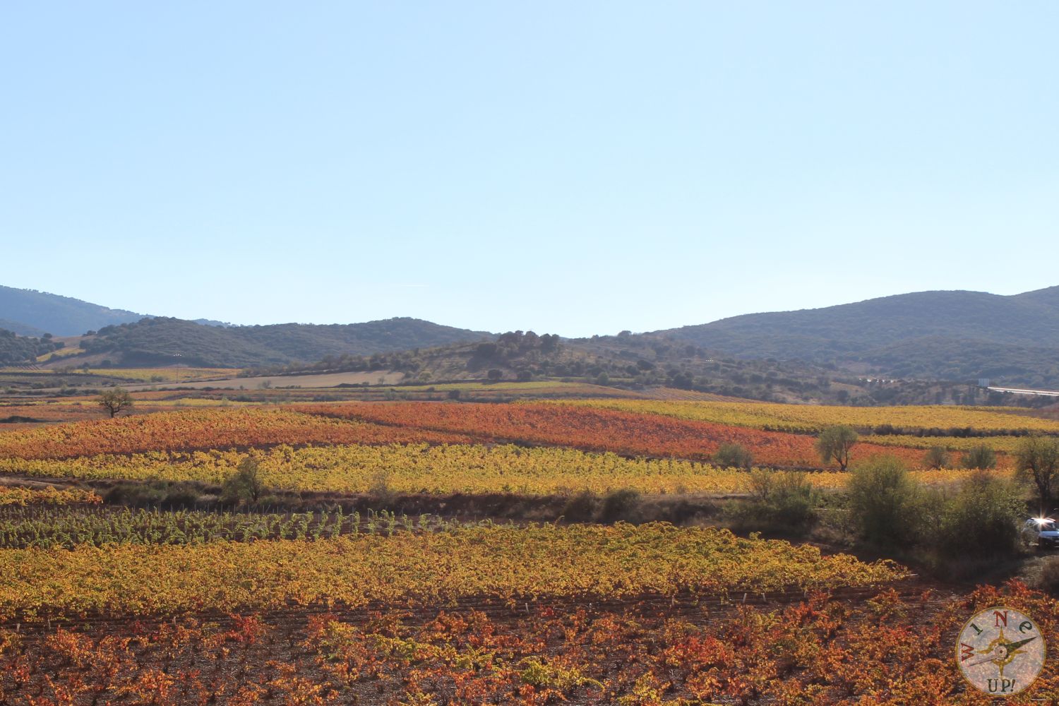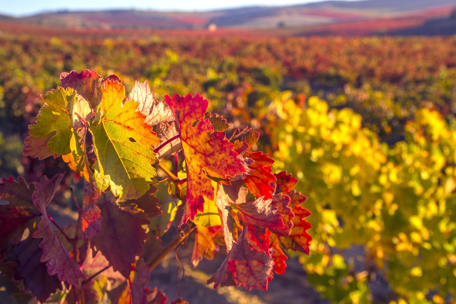 Cuando el viñedo tiene la hoja verde es difícil ver desde lejos las diferentes variedades, sin embargo, cuando llega el otoño se detiene la producción de clorofila desapareciendo el característico color verde dando paso a otros pigmentos que son los que nos aportan esa diversidad cromática.