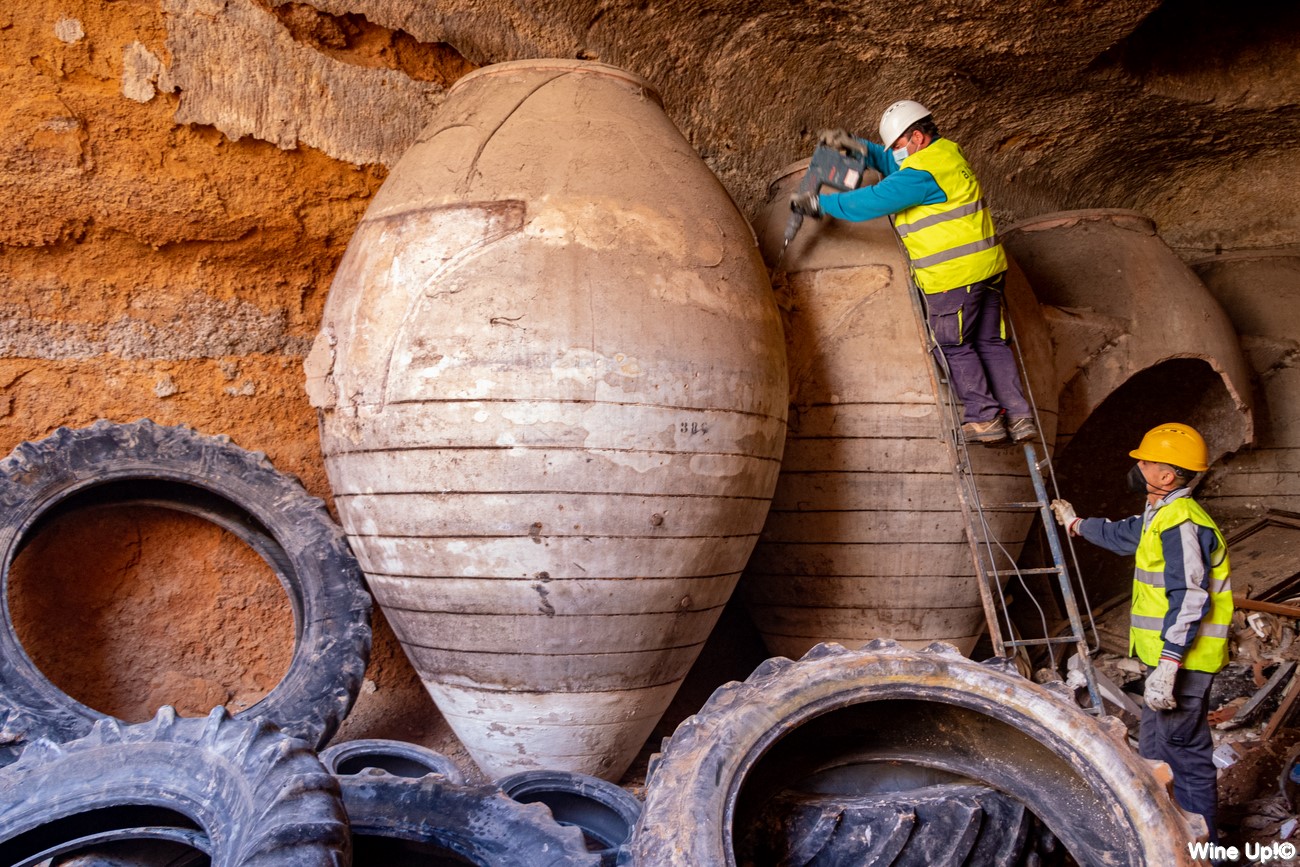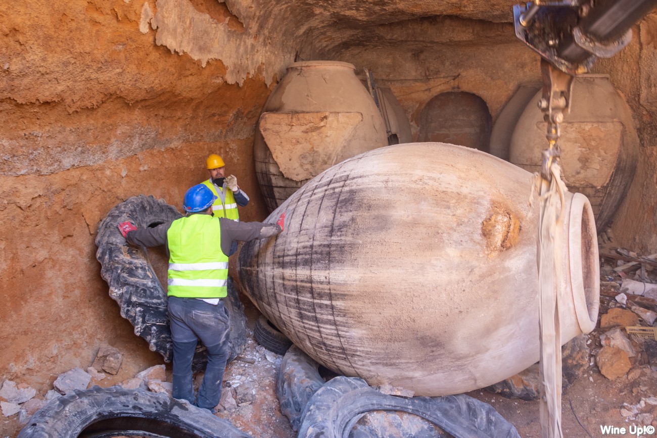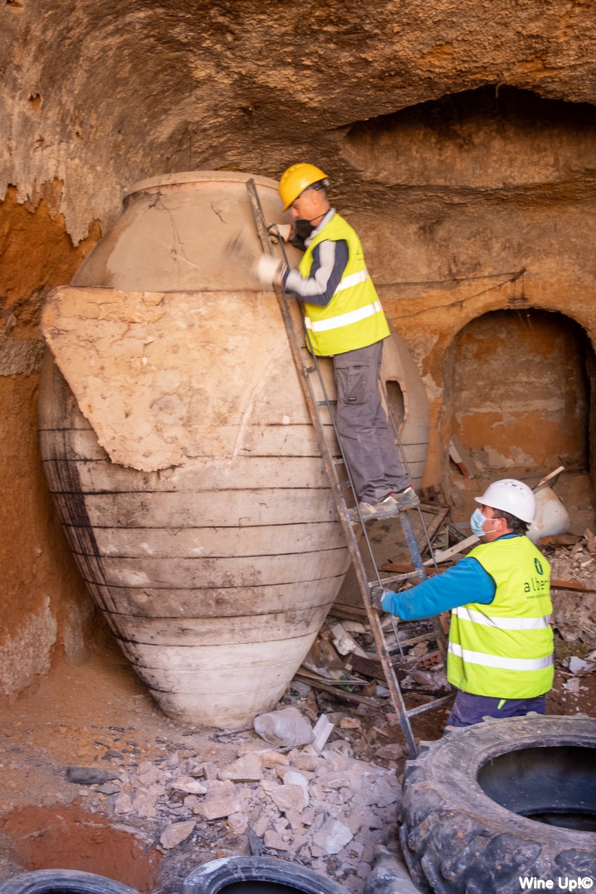 De la cueva se han extraído 8 grandes tinajas de barro en perfecto estado que tras un delicado y exhaustivo proceso de limpieza, se les dará una nueva ubicación con el objetivo de el enólogo de Verum, Elías López Montero vuelva a elaborar y criar vino en ellas uniéndose al proyecto de recuperación de variedades ancestrales como la Tinto Velasco que tanto éxito está teniendo.
