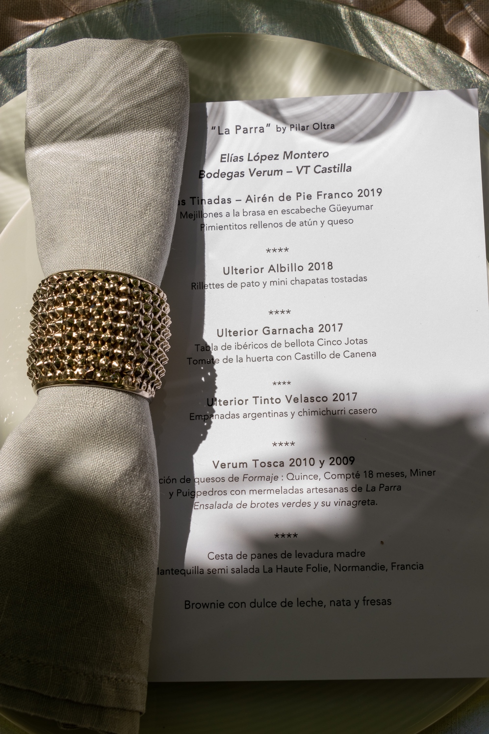 El archiconocido y valorado Verum Las Tinadas Airén de Pie franco (plantado en 1950 abrió la terna de vinos al que le siguió ese del que no puedo dar pistas, pero sí adelantar que será otro motivo más de reconocimiento al trabajo de Elías en su Tomelloso natal (y mío de adopción).