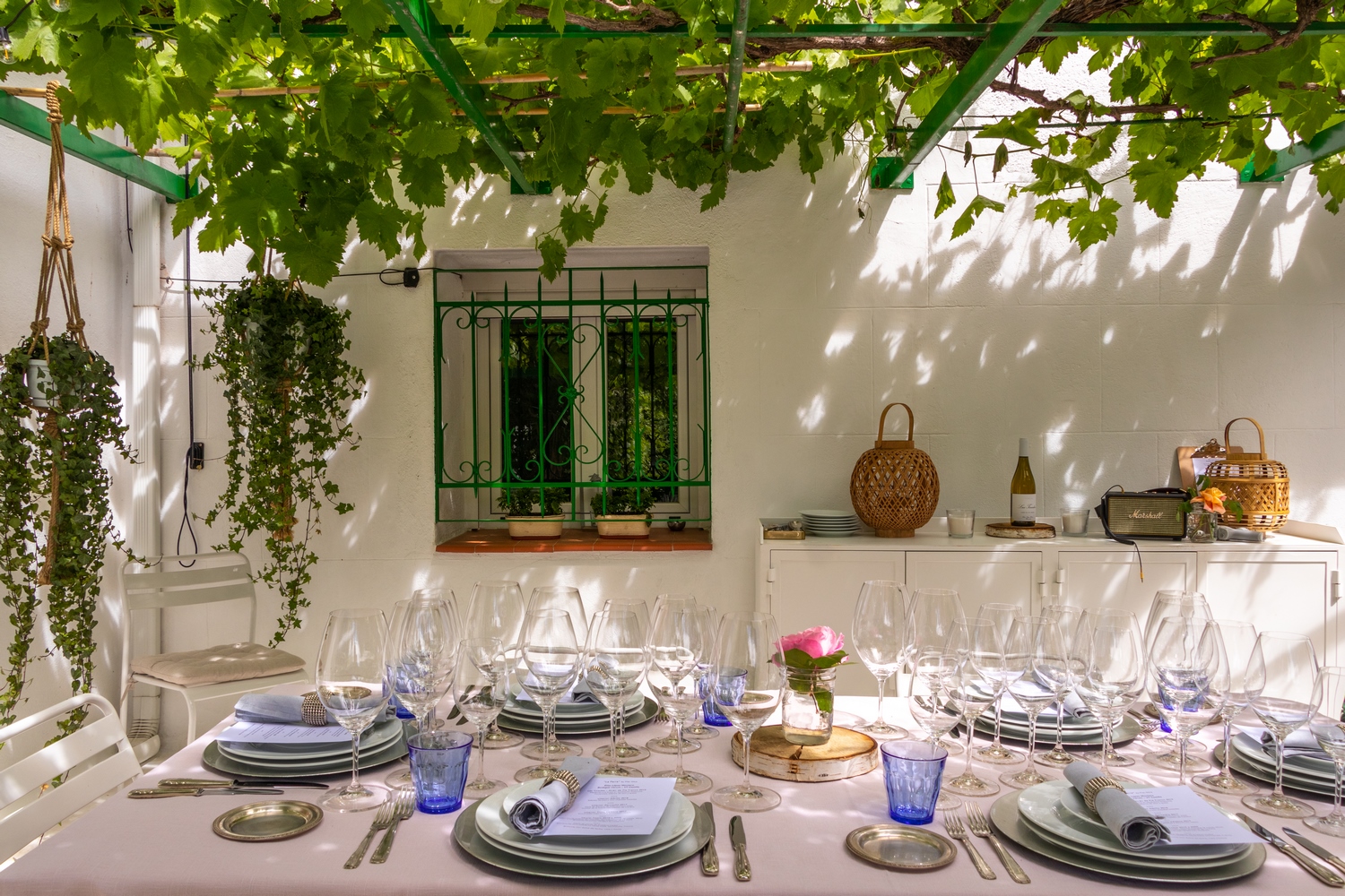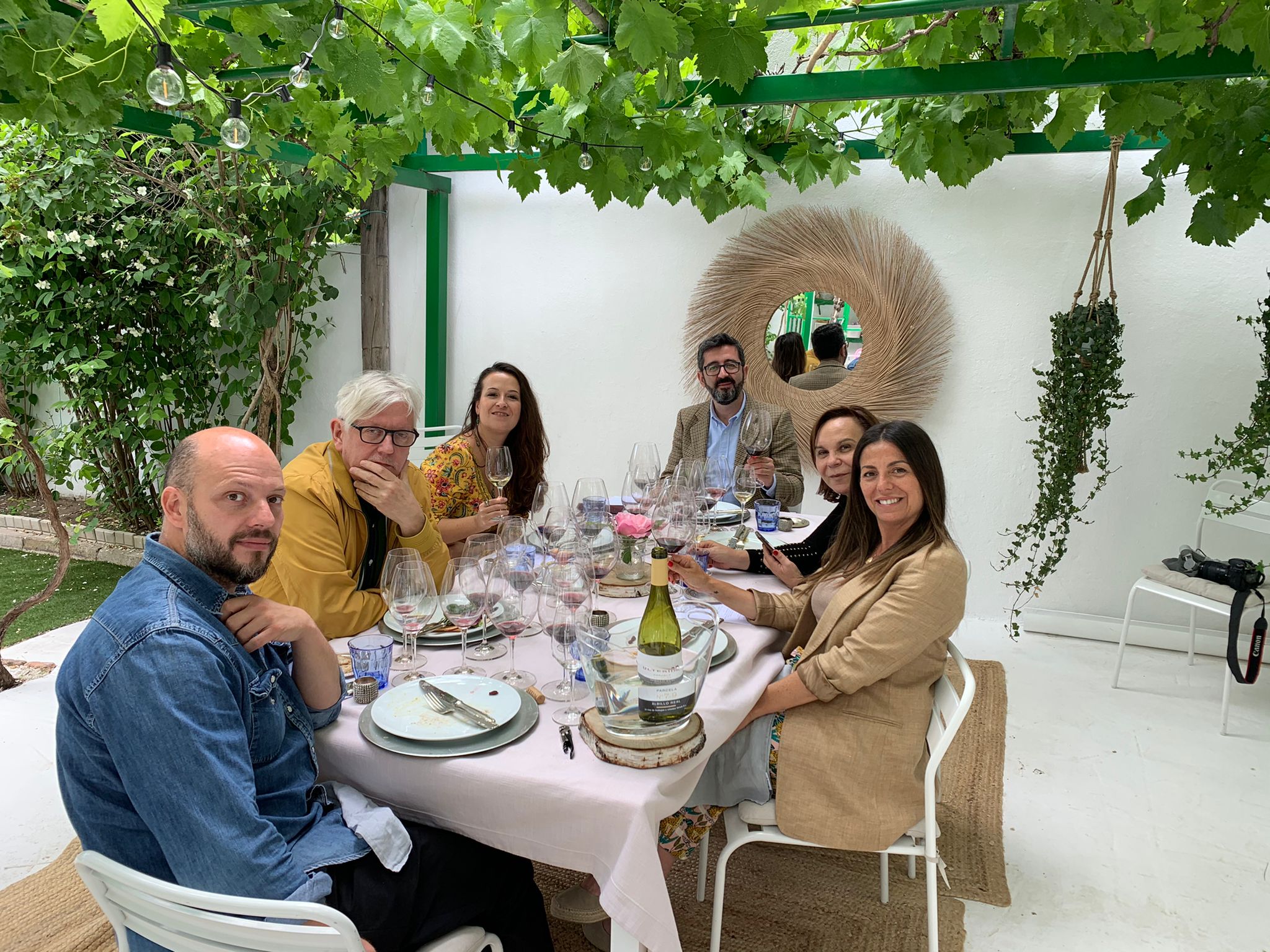 Convocados por Elías en un entorno único de Madrid, “La Parra by Pilar Oltra” hemos disfrutado en un espacio abierto bajo la protección de una parra centenaria, de esas que dan pocas uvas, pero mucha sombra.