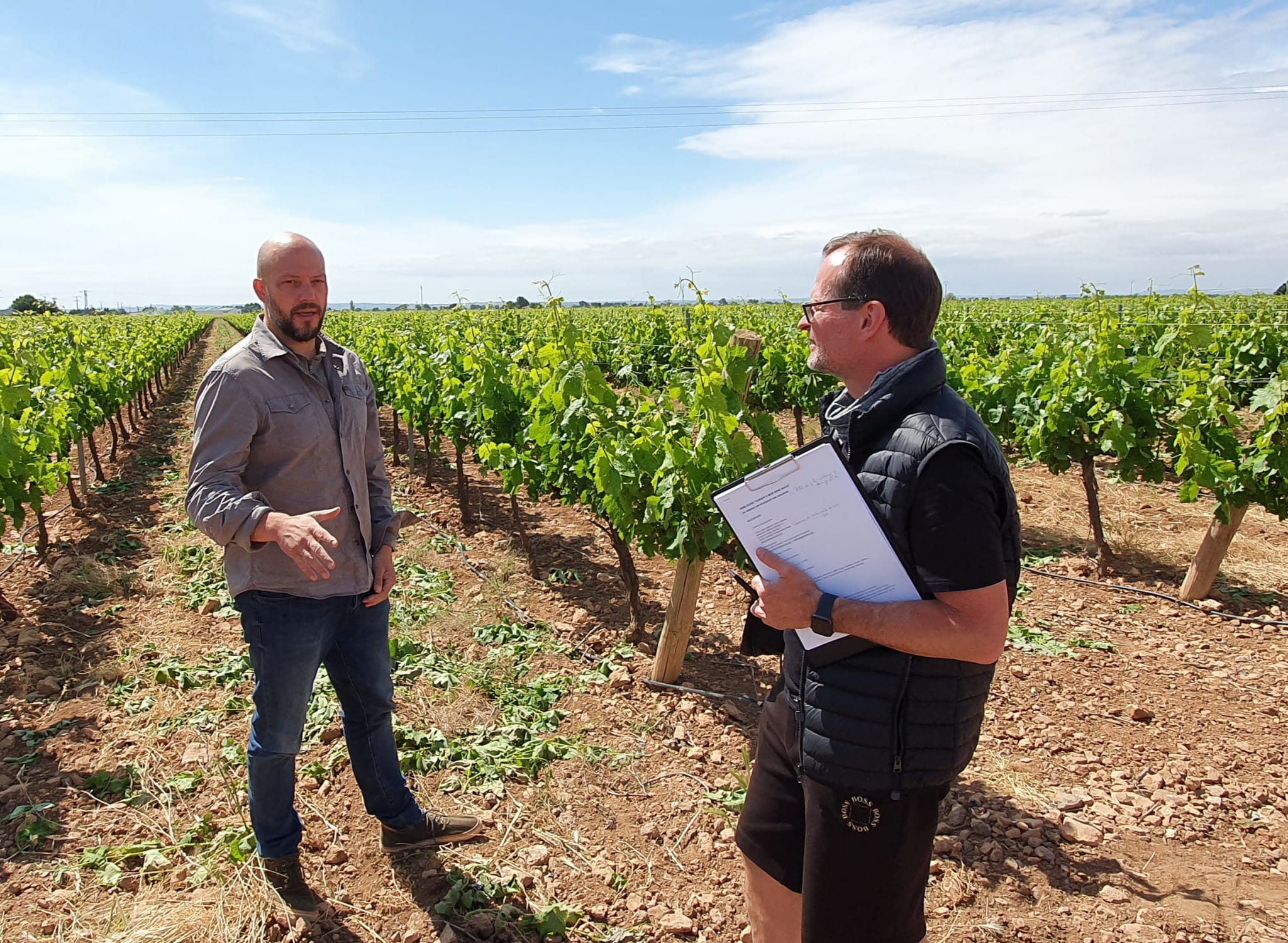 En la visita estuvo acompañado por el enólogo de la bodega Elías López Montero con quien descubrió el paraje Las Tinadas, conocido por el airén de pie franco. El proyecto ULTERIOR de la finca El Romeral y para terminar la jornada, la bodega, donde hicieron un recorrido desde la zona de elaboración a la cueva de crianza, el sistema más sostenible de crianza y guarda de vinos donde se conservan en condiciones óptimas de temperatura y humedad sin necesidad de utilizar recursos energéticos.