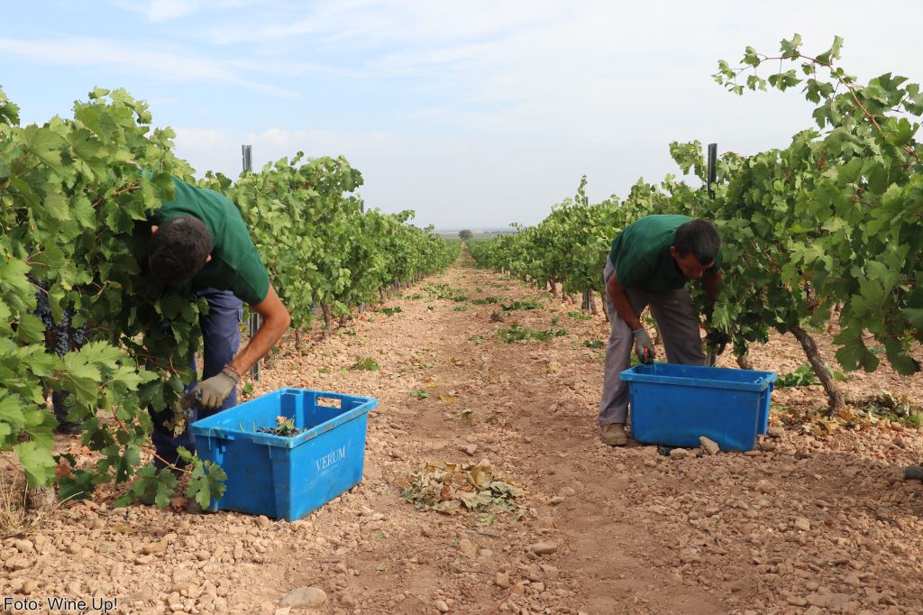 Por lo tanto, la cepa en vaso sólo se puede vendimiar de forma manual. Aquí hemos de valorar si la uva se recoge en cajas o va a remolques de gran capacidad. En cajas de 15 kgs la uva no se aplasta, llega entera a bodega y permite entre otras cosas la selección a mano de los racimos o incluso granos de uva. Si la uva va a remolques, el peso la aplasta por lo que comienza a salir el mosto con grave riesgo de que se inicie la fermentación y quede fuera del control del enólogo.