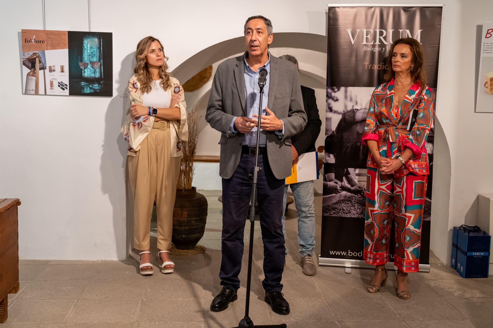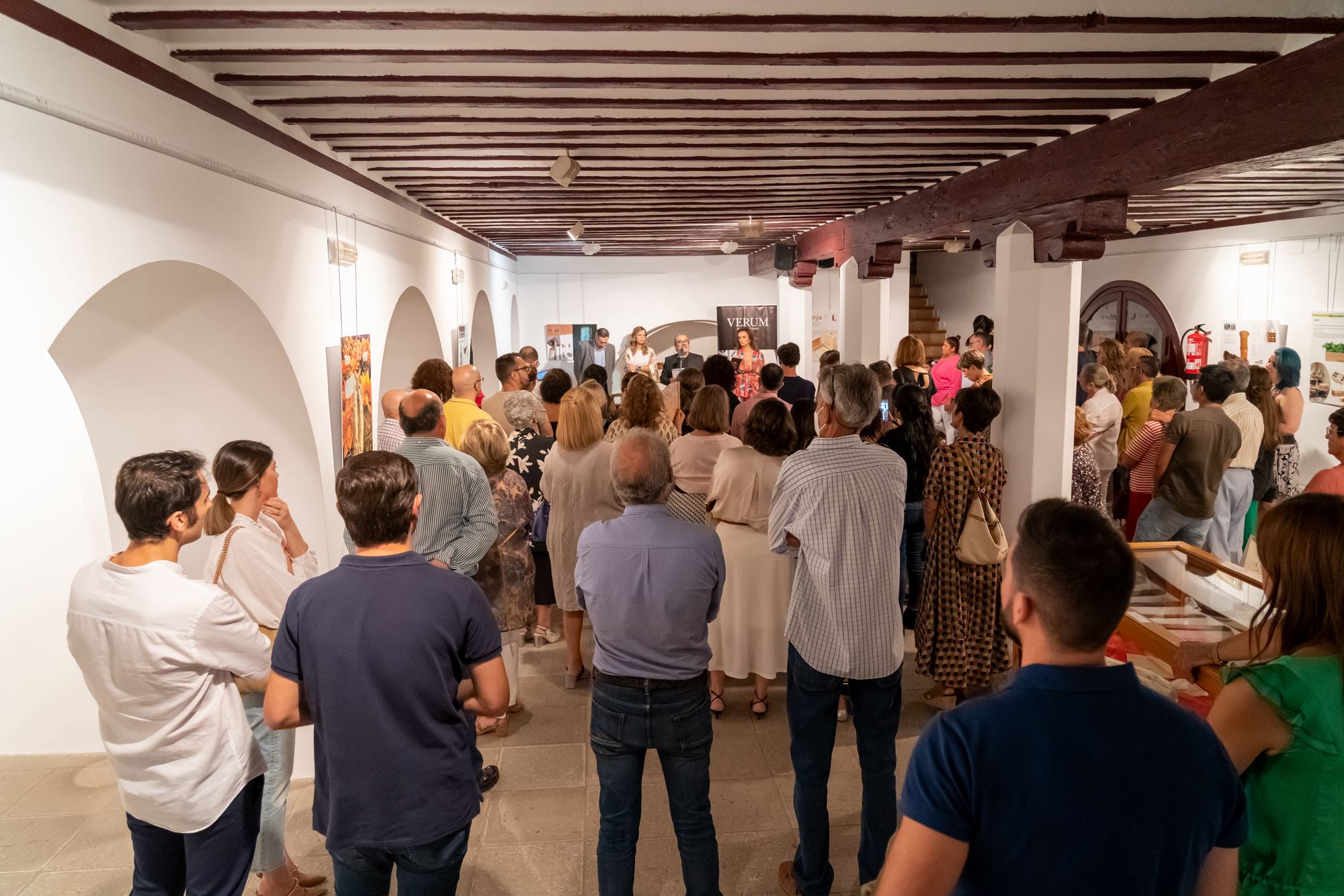 La inauguración estuvo presidida por el Delegado provincial de educación D. José Jesús Caro Sierra acompañado por la concejal de Cultura Dña. Nazareth Rodrigo, de Festejos y turismo, D. Raúl Zatón, además del resto de la corporación municipal. Por parte de Bodegas Verum, la familia López Montero, propietaria de la firma y el equipo directivo de la Escuela Arte y Superior de Diseño de Producto Antonio López con su director al frente, Juan Carlos Albaya.