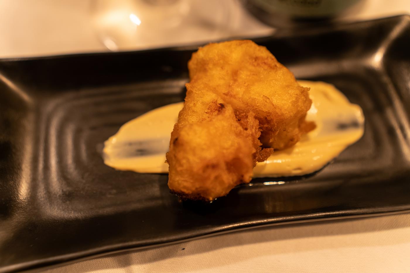 4. Taquito de Bacalao en Tempura con Crema de Ajo armonizado con