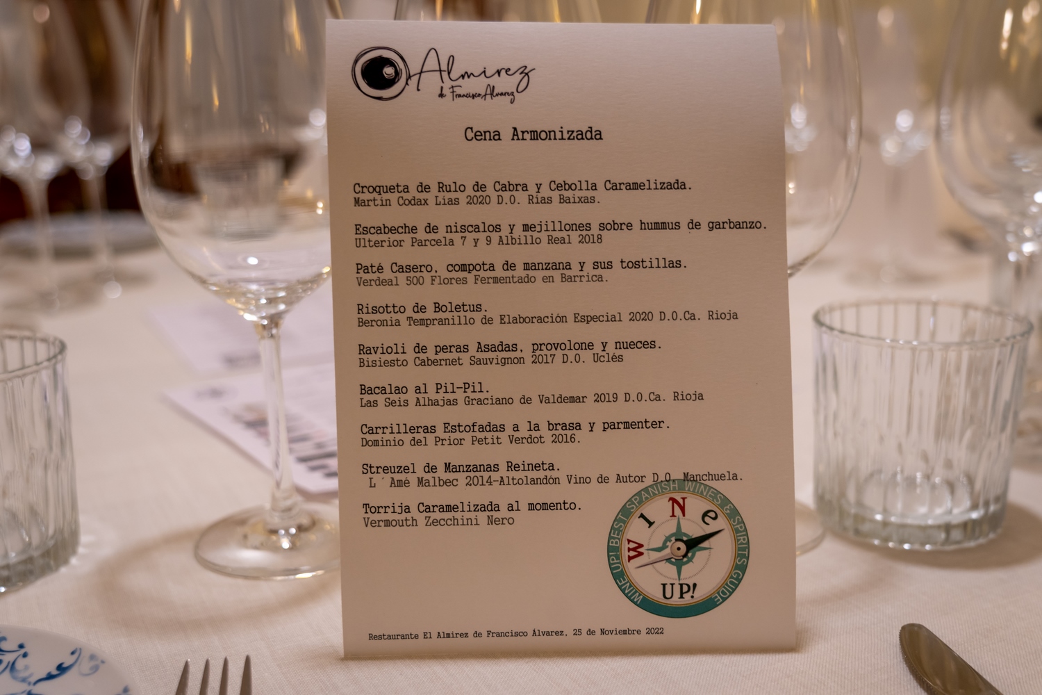 Cena armonizada del WINE UP TOUR en restaurante El Almirez de Francisco Álvarez de El Barco de Ávila. Cena armonizada celebrada el día 27 de noviembre en colaboración con La Vinoteca Mayor 22: