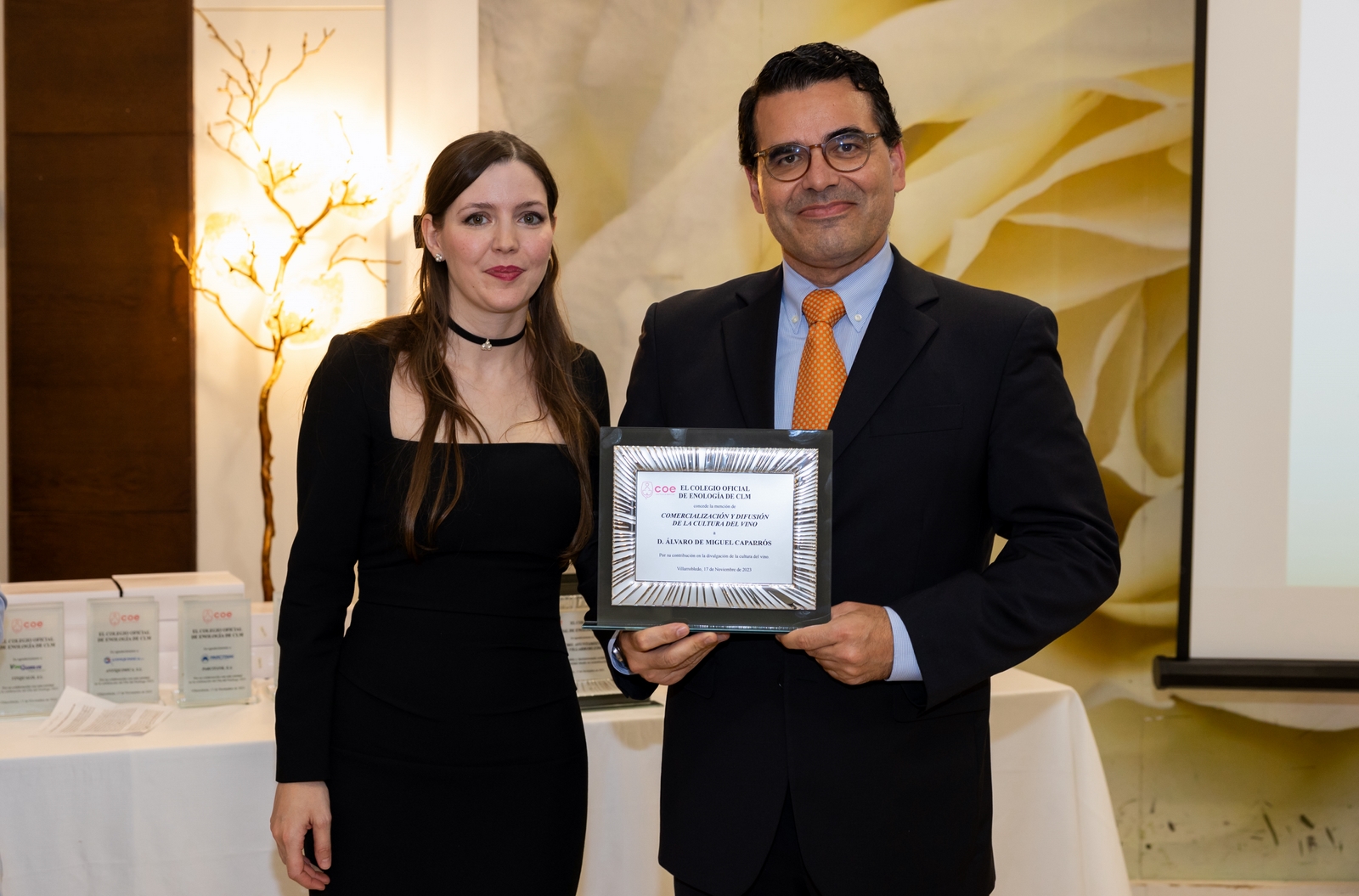 Álvaro de Miguel Caparrós, conocido en redes sociales por @el_catacaldos, recibió el premio a la “Comercialización y difusión de la cultura del vino 2023”. Mención que reconoce sus más de 13 años de dedicación al mundo del vino y la gastronomía, tanto en su labor como gastrónomo e influencer como en su papel de la sumillería regional como Vicepresidente de la Asociación de Sumilleres de Castilla-La Mancha y Presidente de la Asociación de Sumilleres de Albacete.