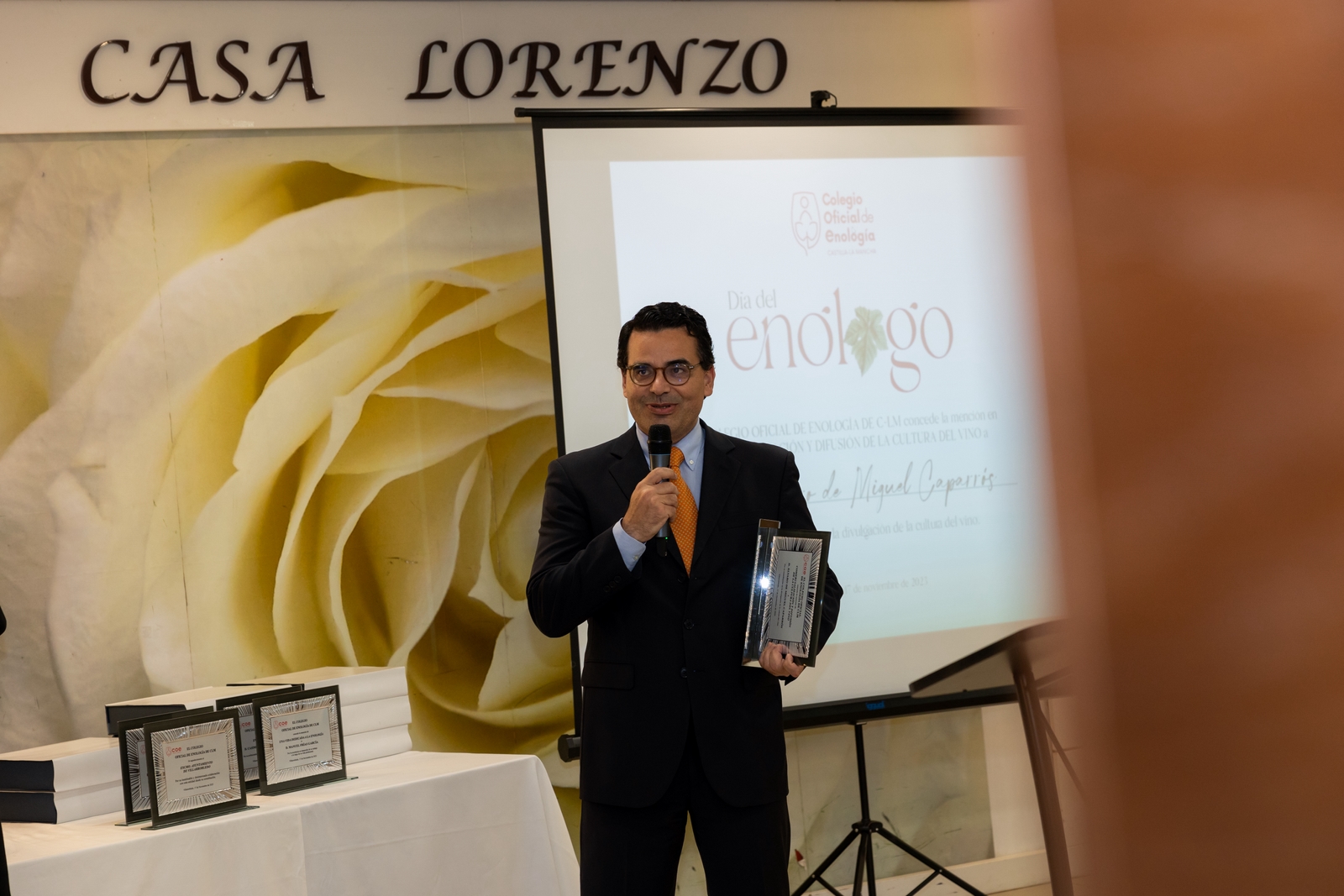 Álvaro de Miguel agradeció profundamente este reconocimiento a la decana del Colegio, Milagros Romero, haciendo extensible al órgano de gobierno y todos los colegiados destacando el trabajo que vienen desarrollando desde su constitución, poniendo en valor la figura profesional del enólogo, así como una férrea defensa de sus intereses. Reconocimiento que tiene un valor especial por venir de los profesionales que hacen el vino en su tierra, que, gracias a su formación y trabajo, hacen felices a todos los que disfrutamos del vino.
