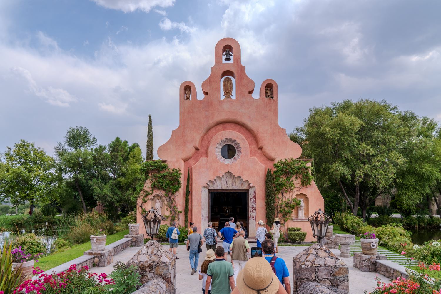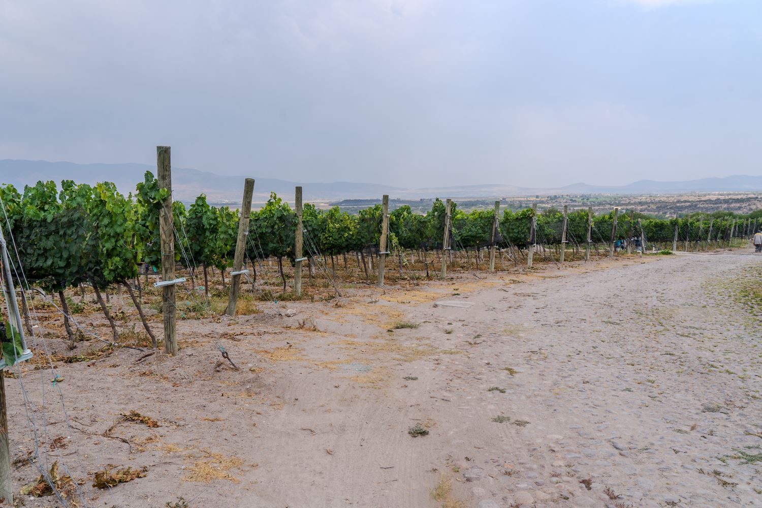El paisaje cambió al entrar en la Hacienda San José Lavista, un proyecto iniciado en 2010 sobre una antigua hacienda familiar. Una bodega pequeña pero impresionante, construida en estilo colonial, acompañada de otras instalaciones como una capilla no consagrada, salones de lujo para eventos y hasta un pequeño lago artificial… todo construido con exquisito gusto, en un complejo cuyo principal atractivo son los viñedos y la bodega. La visita comenzó con una cata vertical de tres añadas de la variedad Malbec: 2018, 2020 y 2022. Muy bien elaborados, con cierta calidez pero muy interesantes. Personalmente, el que más me gustó fue la añada 2018.