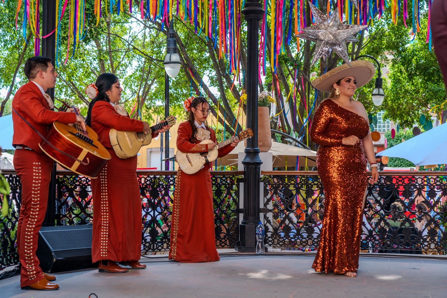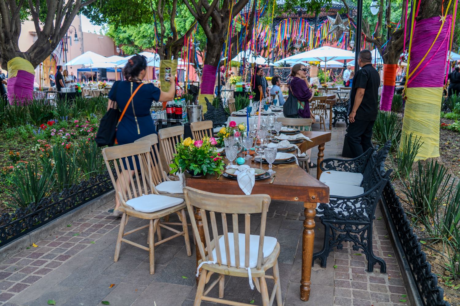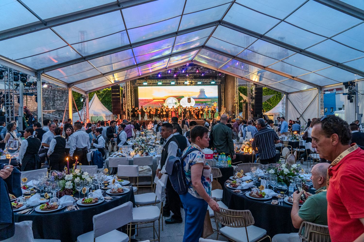 La cena tuvo lugar en la explanada anexa a la Alhóndiga de Granaditas con un espectáculo que repasó la historia cultural y musical de México. Inolvidable.