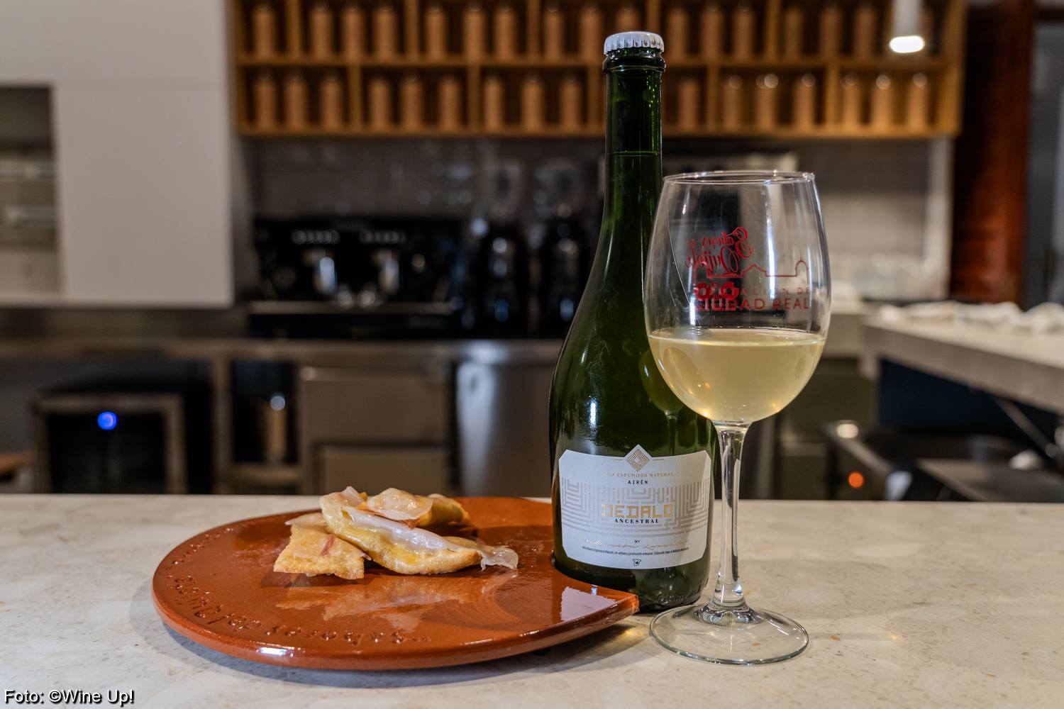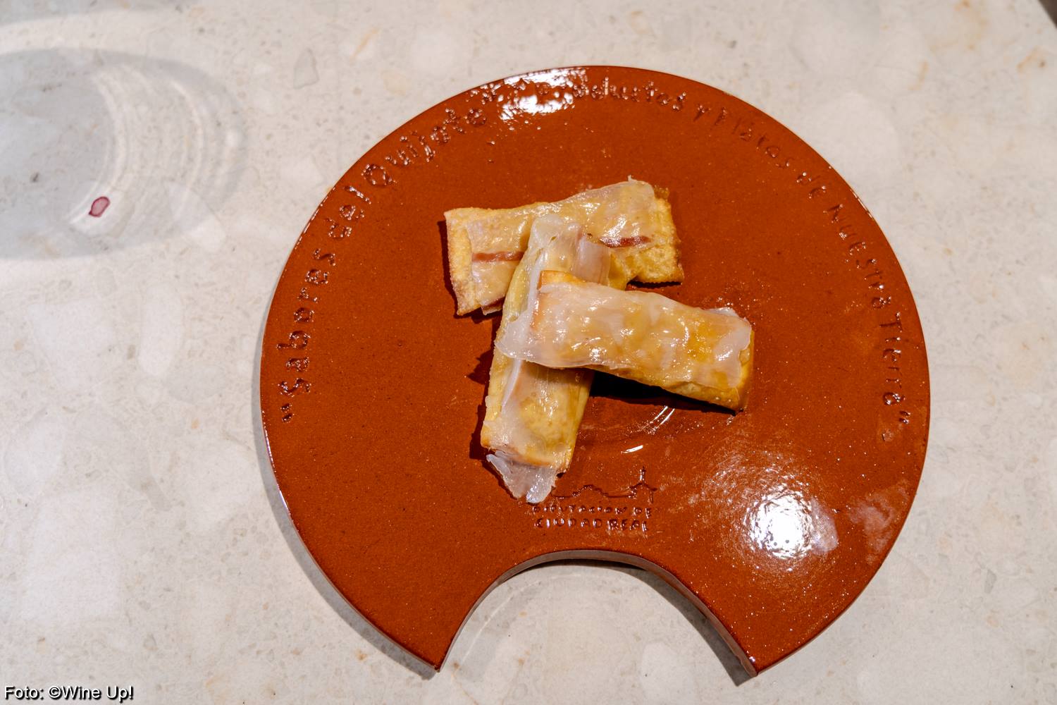 - Dédalo Airén Ancestral de Selección Lucendo con Canelón de Gachas Crujiente con Velo de Panceta Ibérica