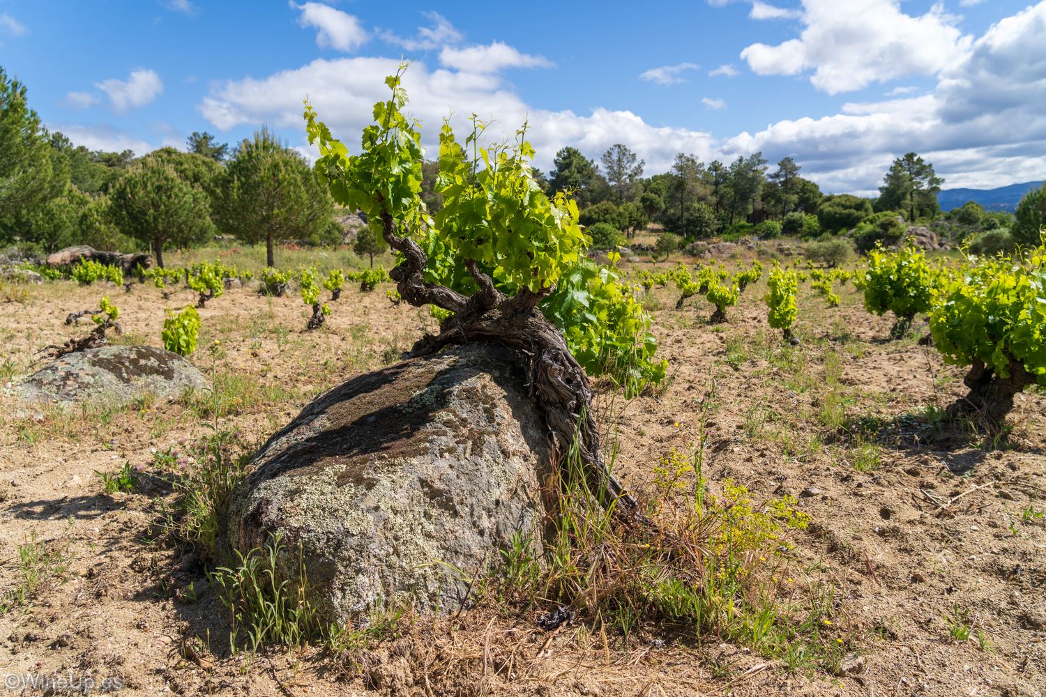 En Cebreros, la viña supera los 900 mts de altitud, hablando de “superviñas” más que de viticultura heroica. Crecer y perdurar más de 80 años en los pobres suelos graníticos y pizarrosos de Cebreros, solo está al alcance de viñas con una genética especial, perfectamente adaptada y aclimatada. Quien injertó estas viñas, eligió bien los esquejes de Garnacha y Albillo Real.