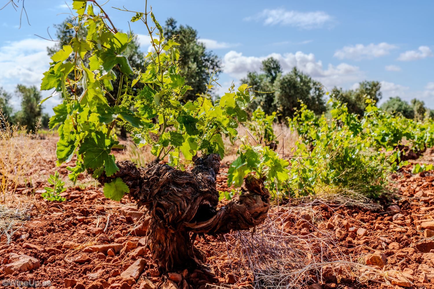 Tenían bien claro que, para su proyecto, no valía cualquier viña, buscaron y encontraron viñedos con más de 80 años, dando por supuesto, que son de variedades autóctonas, las que por experiencia mejor aguantaban las condiciones del clima y suelo: Airén y Garnacha en Valdepeñas. Albillo Real y Garnacha en Cebreros. Esos viñedos viejos han perdurado más por el valor sentimental para los propietarios, que por el rendimiento económico y producción.