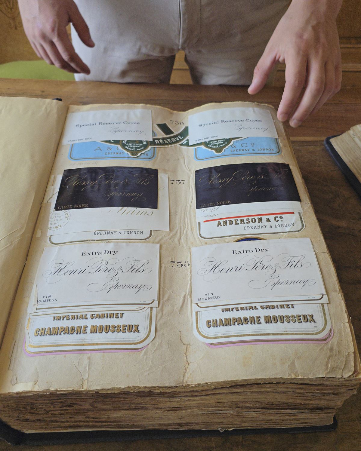 Ese espíritu pionero se siente en cada detalle. Mientras recorríamos las distintas estancias guiados por Grégoire Cabanel, responsable del área de exportación, y gracias a la recomendación de mi querido amigo Charlie Arturaola, descubrí la colección centenaria de etiquetas, los libros de ventas que documentan décadas de historia y la célebre Cuvée des Princes, creada en 1858 en honor a los Príncipes de Orange. Cada anécdota y cada pieza expuesta eran un puente entre la tradición y la audacia estética que define a De Venoge.