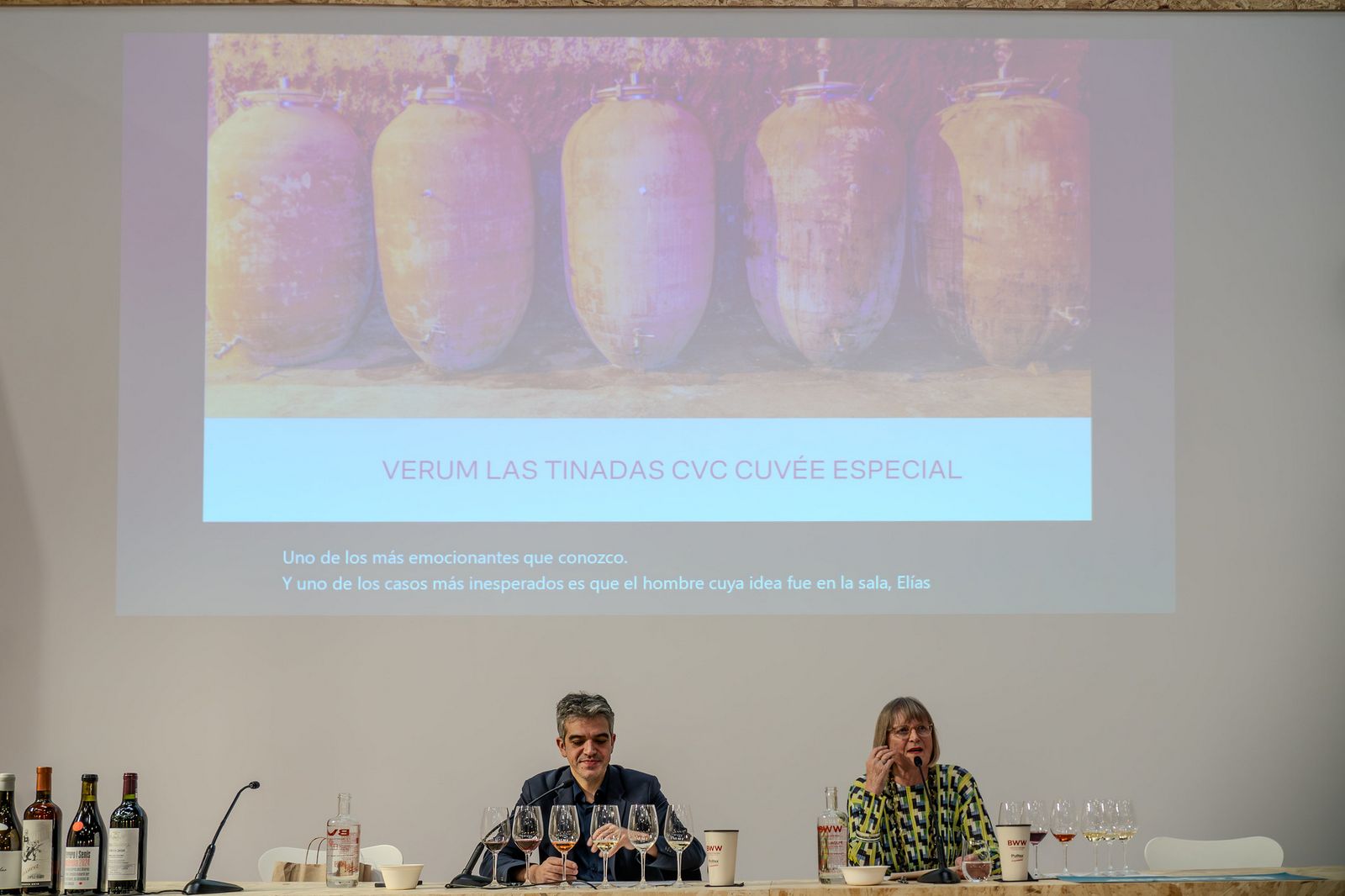 Jancis Robinson aportó contexto, memoria y perspectiva global. Habló de decisiones tomadas en momentos concretos, de productores que supieron leer su tiempo sin traicionar su origen. Ferran Centelles, con su habitual precisión, tradujo esas ideas al lenguaje próximo, cercano y acertado. El diálogo fluyó con naturalidad, sin jerarquías, como una conversación entre dos profesionales que comparten respeto por el viñedo y por quienes lo trabajan.